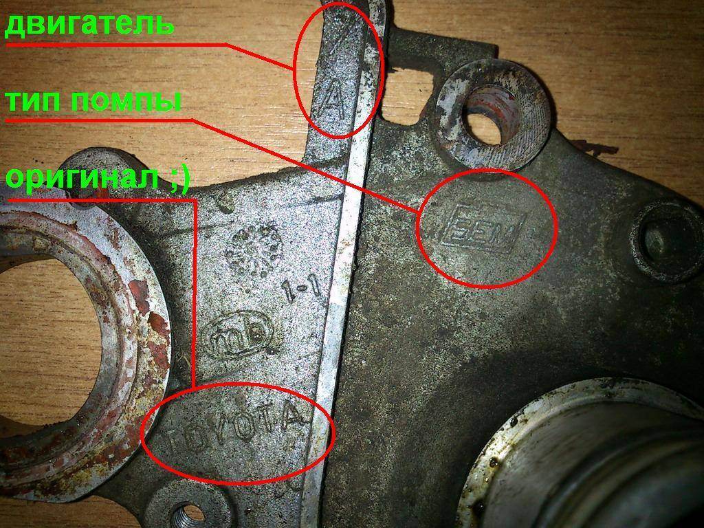 В общем поменял всё, что меняется с заменой ремня ГРМ. На старой помпе отлито печатными буквами: в одном месте TOYOTA, в другом AISIN. Помпа в принципе замены и не требовала, в хорошем состоянии, не люфтит, крутится нормально, разрушений, эрозии и т.п. нет, но кто знает, на сколь её бы хватило.