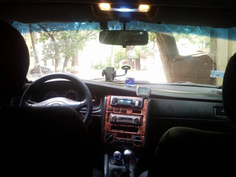 поставил плафон от Toyota Crown 92 года, прикольно получилось, стоит 3-ри лампочки, каждую можно включить отдельно кнопками, средняя реагирует на открывание двери или на постоянное включение, либо выключена... Примерил по месту, обчертил, взял нож, вырезил аккуратно дырку, открутил оригинальный плафон посередине, прокинул провода от него, заизолировал изолентой, проклеил паралоновой лентой шумоизоляции, чтобы при езде не бились об крышу и не создавали лишний шум, подсоеденил провода, плафон проклеил такойже лентой, со стороны железа крыши и защелкнул зажимы, держится супер, светит ночью как днем... Центральную лампу заменил на светодиодный модуль, купленный в автомагазине за 160 рублей. Очень удобно, когда включаешь боковую лампу, она не напрягает водителя, а освещает только место пассажира или водителя, или всю перенюю часть, а если все 3-ри вместе, то светло, как днем. Задним освещает плафон посередине, родной.