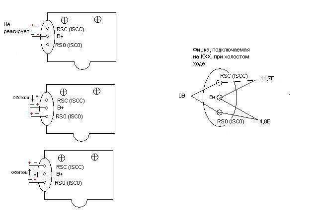 Получилось, что напряжение подаваемое от мозгов на фишку КХХ к разъемам ISCC и B+, бесполезно, т.к. клапан никак не реагирует.