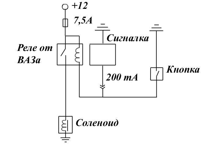 Если будете без релюхи ставить,как у меня,то кнопку лучше без фиксации ставить,я так сжег один соленоид