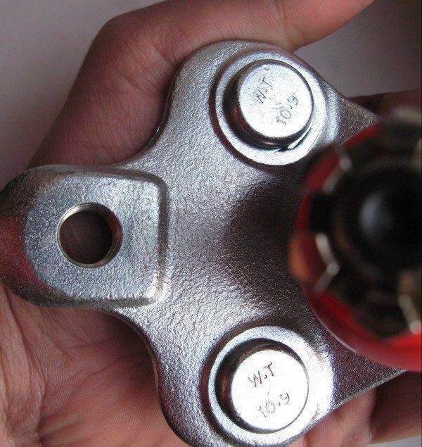 Моя,похоже,тоже из этих будет,но сделана неплохо.Есть одно"но"-палец,похоже,не закален-легко царапается.А может так и нужно?взял тока из-за цены:менее 13 дол.Вообще не теряю надежды,если удачно сниму родную,выбить обломок шпильки и поставить обратно,а эту взял для подстраховки,если что не так пойдёт.Пока сходу открутить гайку не получилось,насилу шплинт вырвал,замочил ВДэхой,зато попутно поменял втулки стаба.