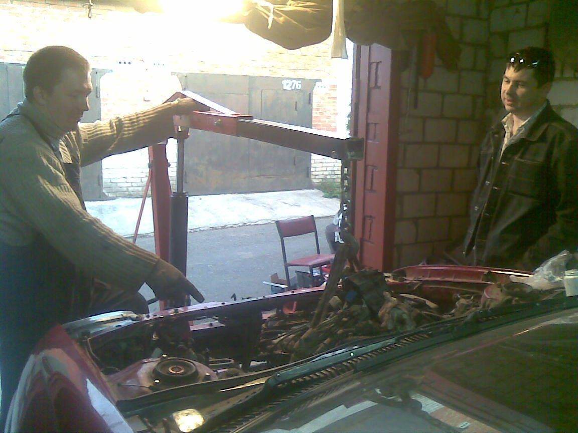 На фото запечатлен еще один участник этого мероприятия (в профиль правда) это Ильюха на GTI он сильно помог как в установке сигнализации так и в снятии движки, по началу мы планировали без коробки снимать, угорели бы ))))