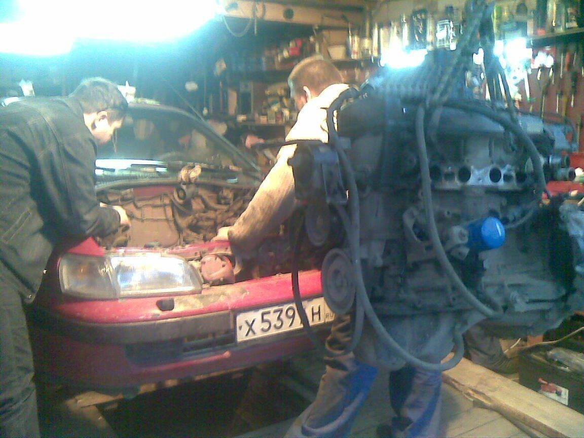 На фото запечатлен еще один участник этого мероприятия (в профиль правда) это Ильюха на GTI он сильно помог как в установке сигнализации так и в снятии движки, по началу мы планировали без коробки снимать, угорели бы ))))