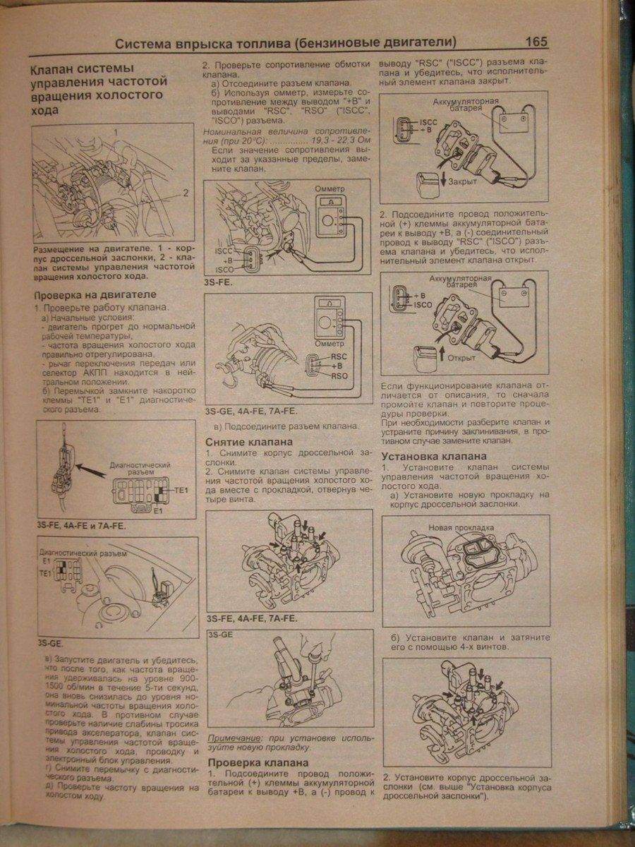 Bopin писал(а): forsash Все проверки по букварю делал. См. выше - у меня сопротивления обмоток не совпадают с букварем. Да, согласен, только по букварю снимаем кхх , смотрим на вал и подаем напряжение закрыть-открыть и смотрим как ведёт себя вал, если не ходит в одну сторону-битая катушка..... И кстати сразу будет видно относительно каких контактов что происходит......Видимо тебе это всё-же необходимо проделать ..... Из букваря видно что у 3S FE и 3S Ge катушки относительно центральной клеммы(средняя точка) на которую подаётся плюсовое напряжение..... а у тебя не так....... У тебя этот общий контакт-нижний...Это видно из твоего промера сопротивлений...... http://carina-e.ru/viewtopic.php?p=239459#239459У правильной катушки будет примерно 19-22 ом между центральной клеммой и крайними и 38-44 между крайними (так у и меня на 4а-фе). Давай дальше, конечно мерять напряжение на клеммах при подключенной фишке не корректно, (там просто импульсы с переменной скважностью) но судить об работе по этому напряжению думаю можно(с большим натягом) там где 11.8В думаю можно считать что это как раз импульсы подаваемые на катушку закрытия ISCC, а 4.8В на катушку открытия ISCO( то есть мозг пытается закрыть кхх)... Ты конечно можешь стать богатым и купить новый кхх в сборе..... Но я думаю всё- же можно разобраться и запустить то что есть....Ну например купить катушку от своего движка на разборе......Ну можно у кого-нибудь для проверки работы снять и проверить........Да и прямо после покупки на разборе проверить......Я так всегда делаю.... Bopin писал(а): Биметал дает обороты 1000-1100.