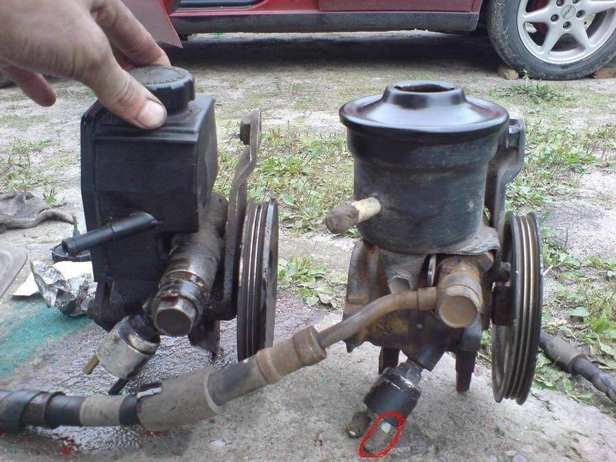 красным обвел ту трубку которая у меня отсутствует, и из этого отверстия сочится жидкость и довольно сильно когда рулем начинаешь крутить! подсказали раз ничего туда у меня не подходит то мол просто его выкрутить и заглушить чем нибудь. а как сделать что правильно никто не может подсказать. он у меня похоже не работает, поэтому новый заказывать из которого бежать ничего не будет не вижу смысла стоит он 2000р