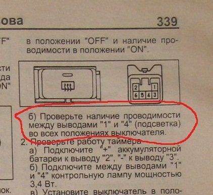 С кнопкой противотуманных фонарей трабл какойто. На схеме 2 и 6 контакты + и - соответственно, отсчитал 2 и 6 контакты, но лампочка не прозванивается.