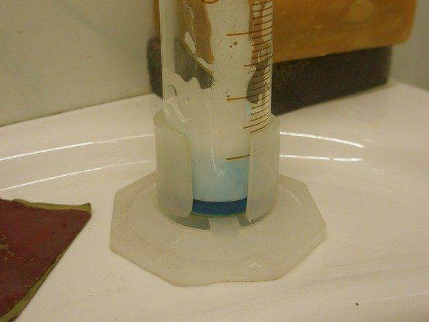 3. При контакте с моющим средством (когда мыл мензурку), остатки АР1 окрашиваются в ярко голубой цвет. Интересная реакция, узнать бы состав АР1 хоть бы частично...
