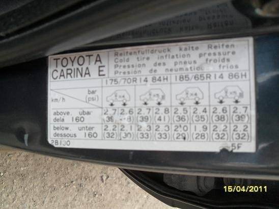 У меня вот такая табличка приклеена с водительской стороны