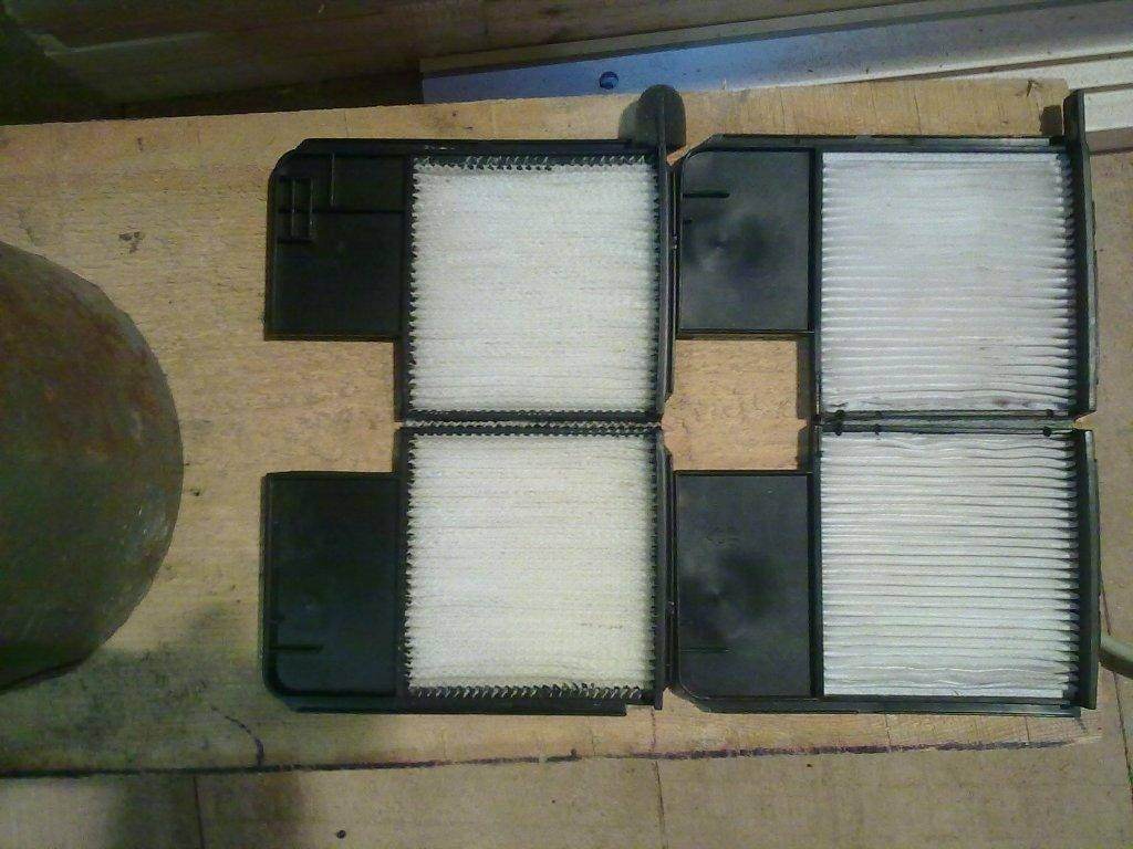 8. Вставлять все о обратной последовательности. Советую, если фильтры не проклеены паралоном сделать это. Это и для герметизации и держаться будет помогать при установке (см. фото). Только верхний фильтр может падать обратно. Просовываешь палец как можно дальше и перекашиваешь его (фильтр) внутри в верхнем положении со стороны пассажирского сидения. Может помочь и держится несколько секунд.. Нижний фильтр встает в пазы верхнего (посмотри сразу как должно быть) пока они в руках...