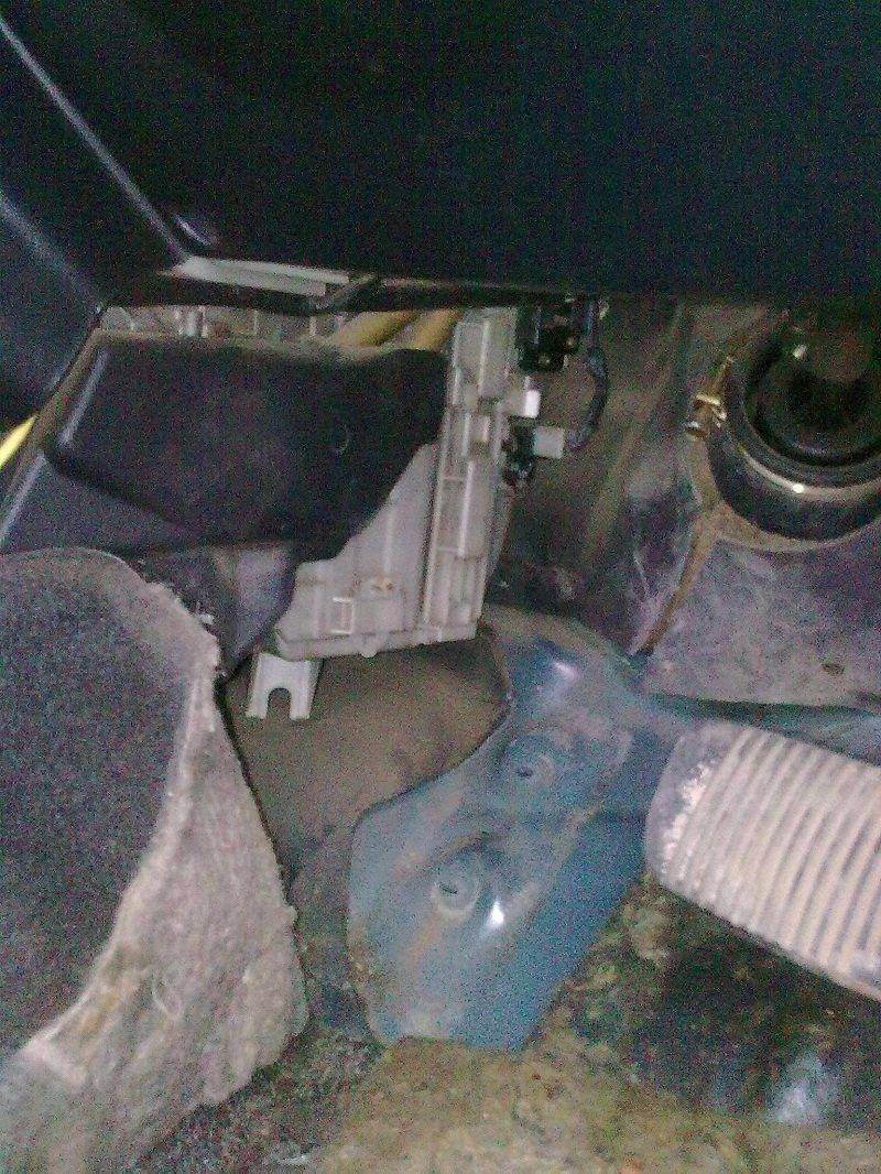 Комментарий к файлу: Снятый ковролин и подставка для ноги водителя - далее виднеется отсек салонного фильтра