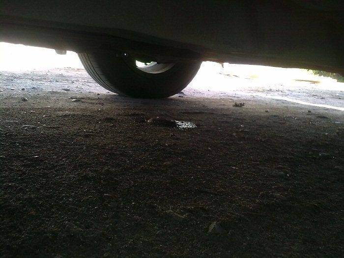Далее заглядываем под авто и видим лужу, затем берём фотоаппарат или телефон и как можно ближе к отсеку испарителя снимаем фото, и видим что там внутри. У меня было практически чисто, внизу была небольшая грязь, но опять же, через насадку для пылесоса, я всё вычистил.