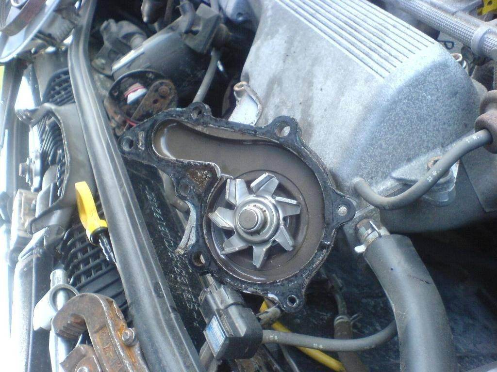Если фотоотчет кривой, сильно не пинайте) На фотике села батарейка, поэтому его хватило только на первые 5 снимков, остальное снимал сотовым..)) Первым делом, пока на месте все ремни решил сорвать болтики на шкиве, 4 шт. ключиком на 10, потом при снятых ремнях неудобно. Далее снятие ремней, на генераторе ослабил 2 крепежных, регулировочным расслабил ремень. Далее ремень гура, ослабил сверху регулировочный и снизу крепежный (предвариельно сняв колесо и правый защитный кожух) Открутил кронштейн крепления щупа, и вытащил его из двигателя. Открутил кронштейн, в котором регулировочный болт ГУРа, от ГБЦ. Для того что бы грязь не попала в поддон через отверстие щупа закрыл бумажной пробкой. Снял ремни. Снял крышку ГБЦ(был приятно удивлен чистотой и отсутствием налета), без снятия крышки ГБЦ не снять пластмассовый кожух, который закрывает ремень ГРМ. Накрыл от пыли тряпочкой ГБЦ. Отрутил 4 болта этого пластмасового кожуха, верхний снят,нижний открутил, но снять его не дает шкив помпы, снимаем шкив(тот еще гемор) Открутил подушку двигателя ту что около ремня ГРМ. И с помощью домкрата, 2х отверток, 2х рук и такой то матери кое как вытащил шкив. снял нижнюю крышку. Слил всю жидкость с радиатора. А вот про жидкость в блоке я забыл..)) Открутил все болтики крепления Помпы, тут то я и вспомнил про жидкость в блоке.. ))) вытекло прилично..Снял помпу, оставив впокое резиновый шланг с хомутами и второй половиной помпы. Я так думаю что придет как раз половина, а не вся всборе) Заказал Aisin цена 1350р срок доставки 1 день, собирать буду завтра.