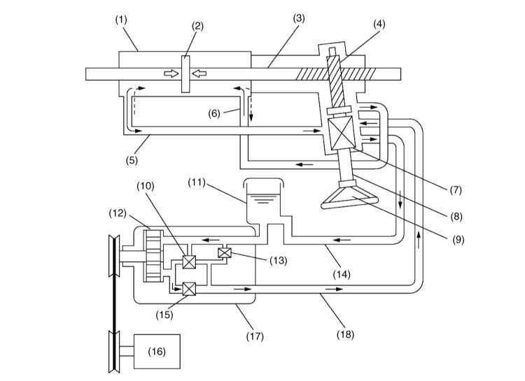 Добавлено спустя 32 секунды: 1 — Силовой цилиндр 2 — Поршень рулевой рейки 3 — Шток рулевой рейки 4 — Вал ведущей шестерни 5 — Трубка А 6 — Трубка В 7 — Роторный управляющий клапан 8 — Рулевой вал 9 — Рулевое колесо 10 — Чувствительный к изменениям давления клапан 11 — Резервуар гидравлической жидкости 12 — Шиберный насос 13 — Редукционный клапан 14 — Шланг В 15 — Клапан регулировки расхода 16 — Двигатель 17 — Насосная сборка 18 — Шланг А 19 — Камера А 20 — Камера В