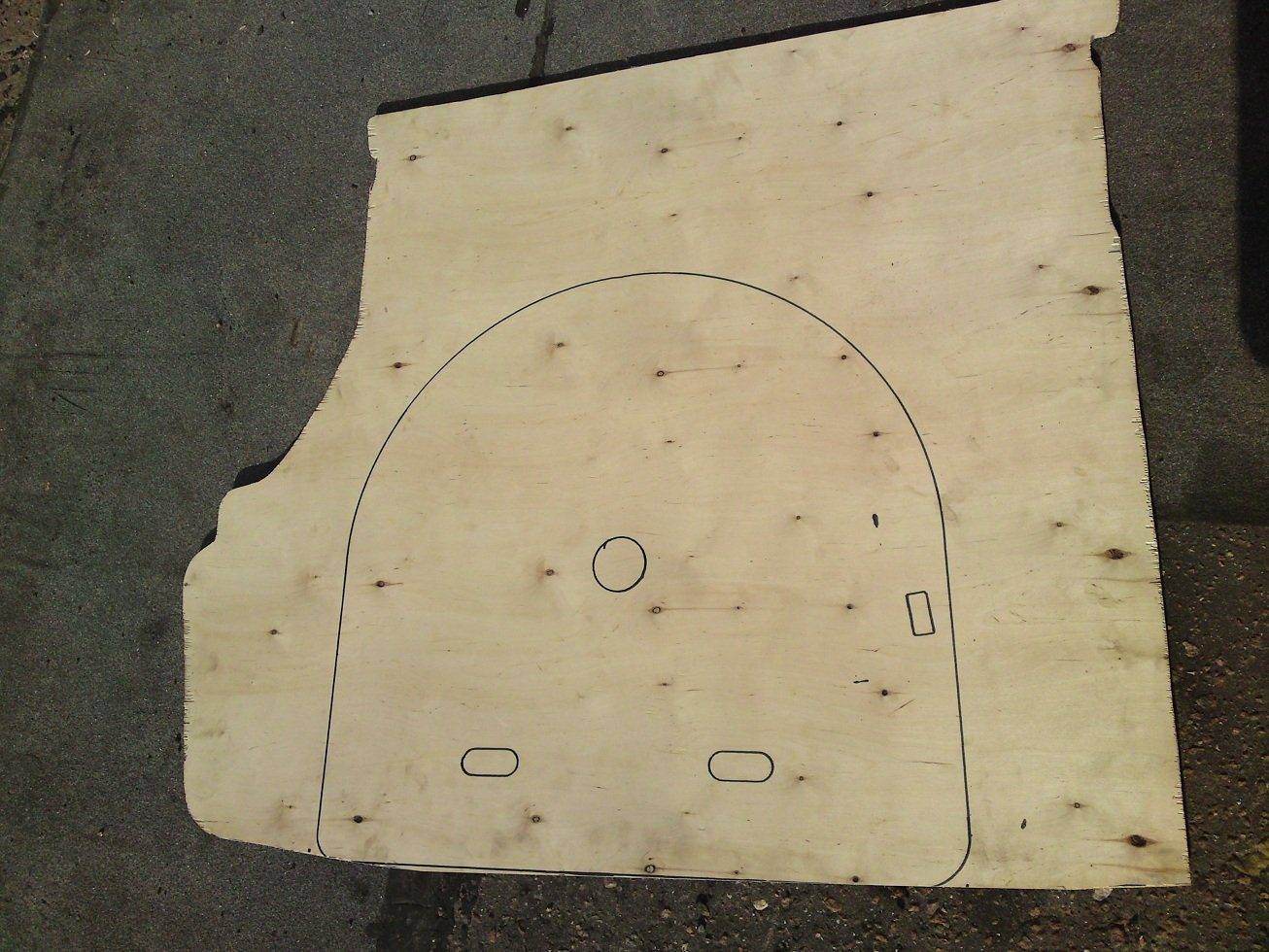 далее берем штатный лючек сделанный из аргалита и по нему смотрим где у нас будет люк для запасного колеса Вложение: