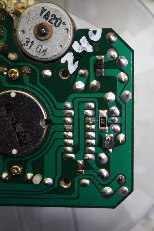 Санта Барбара часть три. Сегодня полез в приборку снова. Стрелка уровня топлива подвирала - решил поправить, а за одно захотел прижать чуток посильнее колпачек стрелки спидометра (из под колпачка пробивается красненький свет). Итог - оторвал пружинку от оси стрелки спидометра. Теперь стрелка не возвращается. С грузиком для стрелки не стал заморачиваться. Уровень топлива даже и проверять не стал. Оставил машину в гараже, на неделю уезжаю на учебу в Москву. Теперь надо искать либо блок спидометра либо приборку Т22.