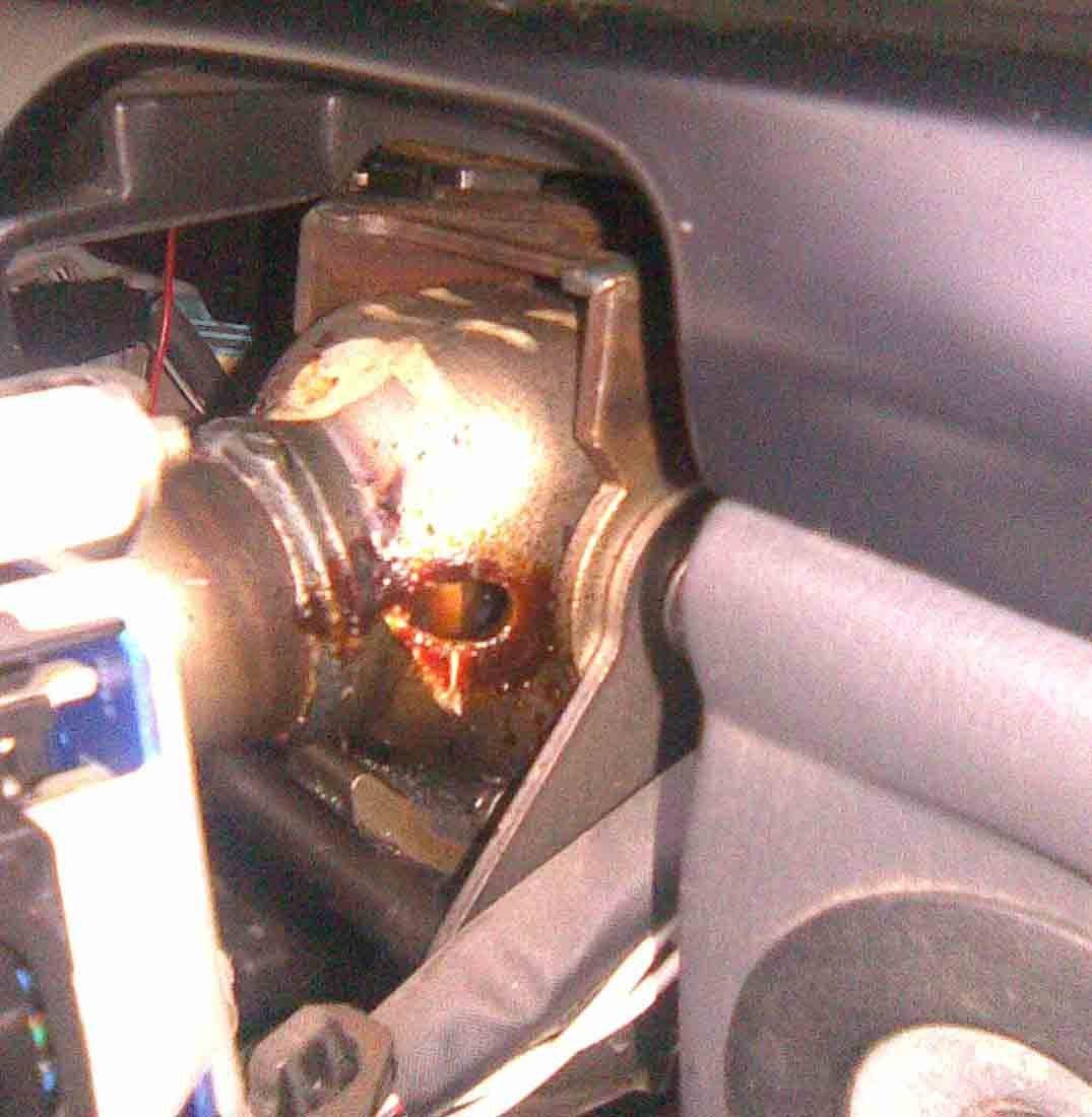 камиль писал(а): а я вот обе крестовины сменил...а люфтов нет.приятно ехать.. но сцуко стук в самой рейке  влево вправо рулём крутишь-стук стук... Такая же хрень- стук, а точнее как будто шарик металлический перекатывается внутри шарнира (см.фото), перекатывается именно при вращении руля. Вопрос по смазке:- коричневая жижа из шарнира лезет - это так и должно быть? Что же там может болтаться и как это оттуда извлечь (колонка англицкая-сцука)?