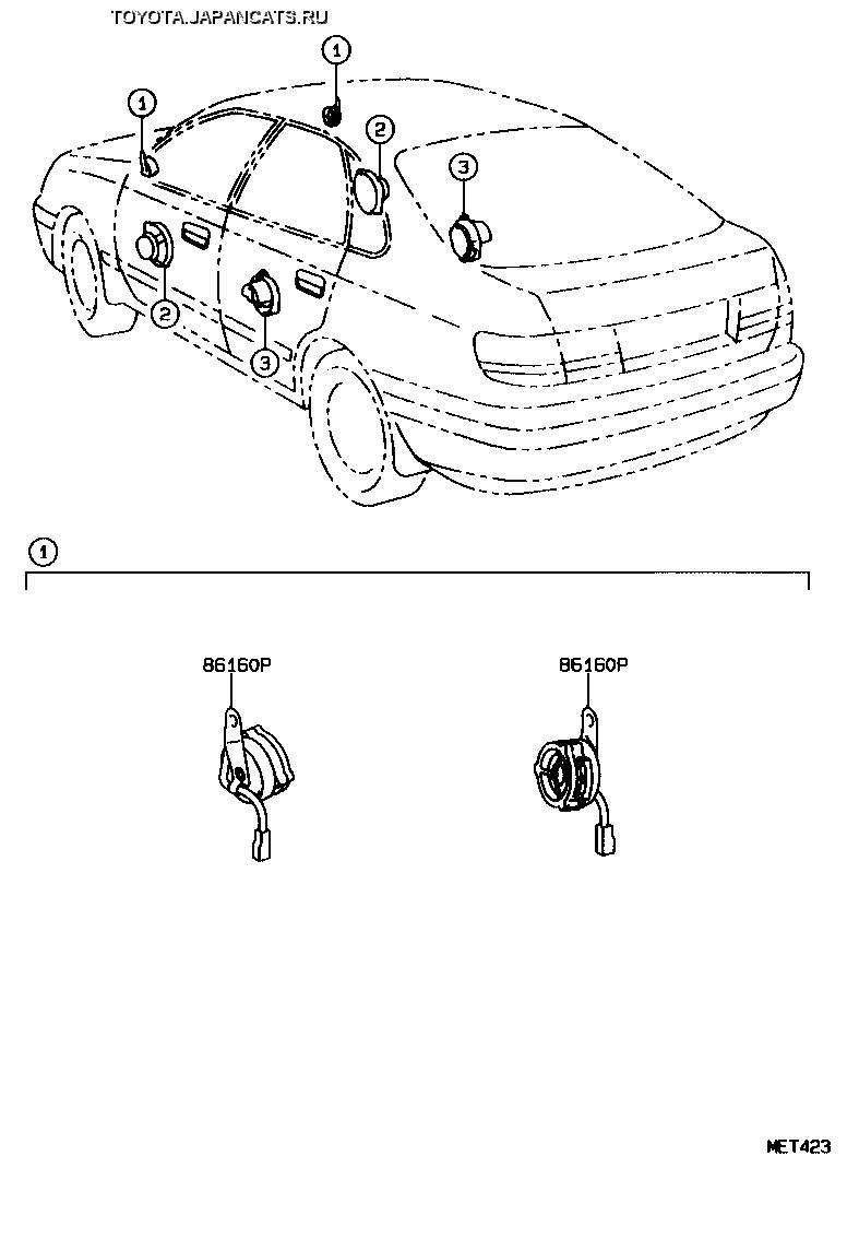 Лезем на экзист, открываем раздел "Кузовные детали, экстерьер, интерьер", затем "Панель передней двери и стекло", подгруппа 1 из 4, и видим такую вот картинку. Номерок соответствует тому, что выбит на детали, если внимательно присмотреться, можно его увидеть. Вот только напрямую не пробивается, надо по картинкам лазить. Выбирать из двух вариантов надо тот, в котором присутствует надпись (SPEAKER), без неё это будет обычная заглушка. Для совсем ленивых - код, который пробивается: 67491-20270-C0 - это для левого уголка. С правым, я думаю, и сами разберётесь.