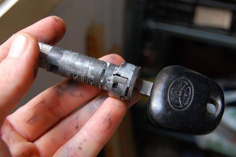 Сегодня отремонтировал замок зажигания, лечил закусывание ключа. Небольшой фотоотчет с описанием, как делать не нужно, чтобы эта простая работа не заняла вместо 20 минут 1,5 часа. Итак, добираемся до замка зажигания, открутив 2 самореза снизу по углам пластиковой накладки под рулем. Чтобы ничего не поломать, откидываем фишку иммобилайзера. Поворачиваем ключ в положение АСС, утапливаем фиксатор и вместе с ключом достаем личинку в корпусе. Вложение: