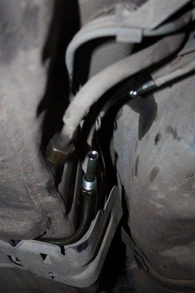 Комментарий к файлу: Теперь снизу в переднем левом углу бака откручиваем трубку высокого давления и обратки, а также мелочь типа тросы ручника и защиту от выхлопной трубы, после откручиваем два болта головкой на 12ть которые держат две лямки(крепление бака)