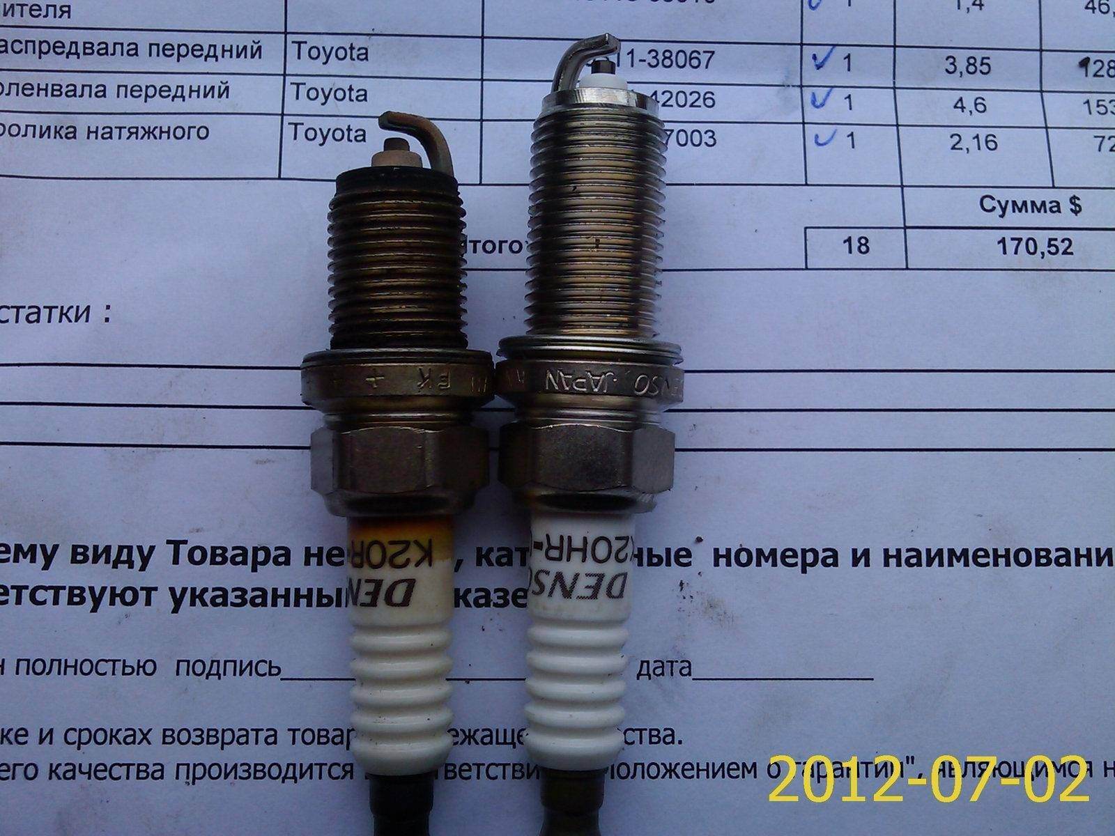 Сейчас стоят Bocsh platinum брал на Эксисте по 80 р за штуку. В последний раз ставил типа оригинальные Тойота, с названием Денсо, так на всех 4 после 1000 пробега изолятор стал болтаться, я думал, что за стуки в двигателе... Короче левак полнейший, и в интернете тоже очень много жалоб именно на Денсо. Год назад ставил иридиевые Денсо 400 р за штуку- скажу честно никакой разницы не заметил от обычных и ходят также по времени, какие там 100 000 км??? Когда их снял через 30000 там слой нагара был жуткий, я так понял сами они не очищаются что ли. Не тратьте деньги напрасно. Мощности лишней не почувствуете. Бош платинум снял через 20000- чистые были. Короче берите Бош платинум- цена качество лучше не найдете. 320 р за комплект. Расход по московским пробкам 10 литров на 2 литровом 3S FE автомат, трасса 7 литров до 120 км в час. Пробег 500 000 км. Расход масла Agip SAE 50 летом и 40 зимой 1 литр на 1000 км!!! Знаю много, но двигатель вообще никогда на вскрывали и никогда не вскроют, проще поставить контрактный, колпачки там просто уже отсутствуют наверно))).
