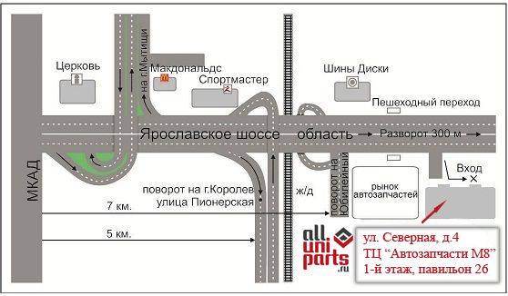 Ув. участники форума, предлагаем вашему вниманию: Новые оригинальные и неоригинальные запчасти на TOYOTA, NISSAN, MITSUBISHI, SUZUKI, SUBARU по НИЗКИМ ценам. Наш сайт: http://alluniparts.ru/При регистрации на сайте первоначально отображаются розничные цены. Для участников форума сделаем скидку после регистрации. Обязательно сообщить логин (клиентский номер) и указать, что Вы с клуба http://carina-e.ru/. Если у Вас возникли вопросы то Вы можете обратиться в личку, icq, skype или по телефону. Все контакты ниже. ПОРЯДОК ЗАПРОСАVIN или FRAME и список необходимых деталей или НОМЕР ДЕТАЛИ (ОЕМ) Пример 1: Интересует задняя ступица, ремень ГРМ, ролик натяжителя ремня ГРМ, правое переднее крыло и лючек бензобака на автомобиль Suzuki SX4, 2.0 л VIN:000000000000000. Прошу рассчитать итоговую стоимость с учетом доставки почтой России в г. Уфа. Пример 2: Живу в Москве, могу забрать товар сам, по какой цене мне обойдется деталь на Suzuki SX4, 2.0 л VIN:000000000000000 каталожный номер детали 000000000 и 00000000 СТОИМОСТЬ ТОВАРАСтоимость рассчитана с учетом его получения в г. Москве. Если нужна доставка по РФ, то это рассчитывается дополнительно при производстве заказа по выбранному клиентом способу доставки. Приглашаем партнеров к сотрудничеству. Специальные цены для автосервисов. СРОКИ ПОСТАВКИ ЗАКАЗАННОГО ТОВАРАПо Московским складам от 1-го дня Из ОАЭ от 6 до 10 дней регулярными авиарейсами, 45-60 дней контейнером Из Японии от 15 дней Из США от 14 дней ТОВАР С АУКЦИОНОВ Yahoo.com и Ebay.com И ЛЮБЫХ ЯПОНСКИХ ИЛИ АМЕРИКАНСКИХ МАГАЗИНОВнапример: США: http://www.ebay.comhttp://www.amazon.comЯпония: http://www.injapan.ruПОЛУЧЕНИЕ СВОЕГО ЗАКАЗА САМОВЫВОЗ или ДОСТАВКА по МОСКВЕ или МОУПАКОВКА И ДОСТАВКА ПО РФСтоимость упаковки - как правило, входит в стоимость приобретенного Вами товара и зависит от категории товара. Крупногабаритные товары отправляем ЖелДором (расценки и сроки за доставку можно узнать здесь http://jde.ru/services/delivery.html) - стоимость оплаты доставки клиентом по получению товара на месте, а также возможно отправка компанией ГРУЗОВОЗОФФ ( http://www.gruzovozoff.ru/rus/) или ЭНЕРГИЯ ( http://www.energy-tk.ru). Доставка до транспортной компании по Москве 200 р. Мелкие посылки если срочно, то ЕМСом ( http://www.emspost.ru) – оплата доставки рассчитывается и входит в стоимость товара при отправке из Москвы. До 2,5 кг. веса можно почтой России 1 класса (сроки от 4 до 8 дней) - оплата доставки рассчитывается и входит в стоимость товара при отправке. Можно обычной почтой России до 20 кг веса (наложенным платежом нельзя). От вас потребуется подробный почтовый адрес с указанием ФИО (полностью) и номер вашего телефона. СПОСОБЫ ОПЛАТЫОплата возможна как наличным, так и безналичным способом, а также принимаем на карту сбербанка РФ. Возможно, обсудить и другие варианты оплаты. Есть возможность предоплаты 50% заказа на карту сбербанка, остальное при получении товара. Таким способом вы только один рас приезжаете к нам и уже за своим заказанным товаром. НАШ САЙТhttp://www.alluniparts.ruАДРЕС : Автозапчасти Alluniparts в городе Королев - Розничные и Оптовые продажи Московская область, г. Королев, ул. Северная, д.4, ТЦ "Автозапчасти М8", павильон №26 Режим работы: 10:00—19:00 пн—пт сб, вс – выходной 1. Личка 2. ICQ: 21321200 3. E-mail:man@alluniparts.ru 4. Skype: bestskylink` 5. Телефоны: +7 (495) 979-10-59 6. СМС: +7 (926) 350-00-00 Схема проезда: Вложение: