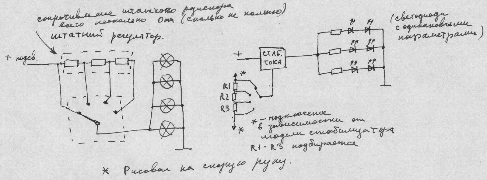 По теме: когда я переделал свою приборку на светики, регулировка практически перестала работать, т.е. на глаз эффекта повышения/понижения яркости небыло.