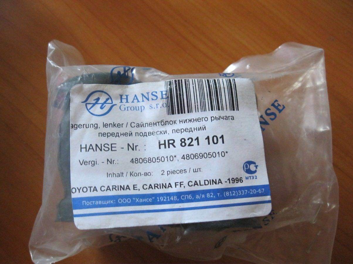 Рычаг подвески Type Aпередний сайлентблок (30мм*33мм) Toyota 48654-20190 Hanse HR 821 101 RBI T2411WS Полиуретан 1-06-133 задний сайлентблок (30мм) Toyota 48655-20140 Hanse HR 821 102 RBI T2409WB Полиуретан 1-06-225 Toyoya Picnic 48655-44010 Рычаг подвески Type Bпередний сайлентблок (37мм*40мм) Toyota 48654-20150(20160) Hanse HR 821 126 RBI T2409WS Полиуретан 1-06-420 задний сайлентблок (24мм) Toyota 48655-20221 Hanse HR 821 143 RBI T2411WB Полиуретан 1-06-709 Втулка 90389-19002 Болты 90119-14023, 90119-14051 Вместе с задним сайлентблоком вставляются новые втулки. Затягивать все болты на колёса опущенном автомобиле!Полиуретан (г.Новосибирск) http://www.polyurethan.ru/index.phpПодделка фирмы Hanse http://www.silentblock.ru