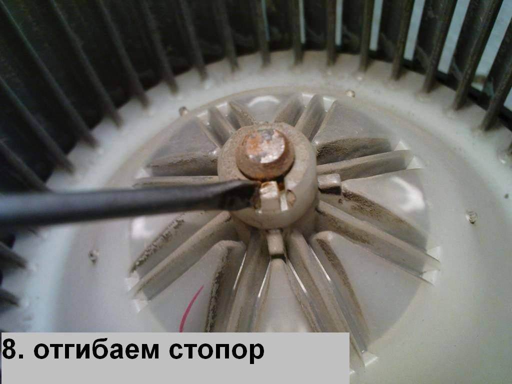 камиль писал(а): а вот и нет... Снимать крыльчатку только по методу,описанному на фотке под номер 9!!!  а если нагреть (феном монтажным) то мест где на фото винт вставлен в пластмассу? потом по любому легче снимется. После окончания всех работ одеть обратно, нагреть и одеть кольцо прижимное я пытался на днях снять крыльчатку отвёртками, снялась только чёрная крышка задняя (правда я пару болтов скрутил с неё предварительно) а ещё лучше не отвёртками а вставить между тонким листом (металлическим или схожей плотности), тогда тянуть проще, точек соприкосновения больше параллельных