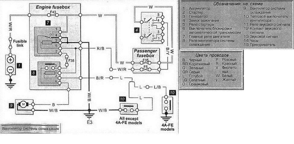 Леха ГАН писал(а): Один провод из блока релюшек тянуть, а второй на корпус кинуть? И какой из них "-"? Синий или белый? Посмотри по букварю - по соответствующей теме и по схемам. У меня было то же самое на моем 4а-фе, перебило провод с датчика включения вентилятора, я по книге посмотрел куда тот провод идет (даже фотку тут скидывал - напрямую под контакт реле воткнул), и так и сделал. Тоже перед зимой ковырялся (зимой с постоянно работающим вентилятором кататься не катит  ). Теперь уже почти как год все работает исправно, только у меня с этого датчика 1 провод шел, не как у тебя 2 (хз мож на 4а по другому сделано нежели на 3с)