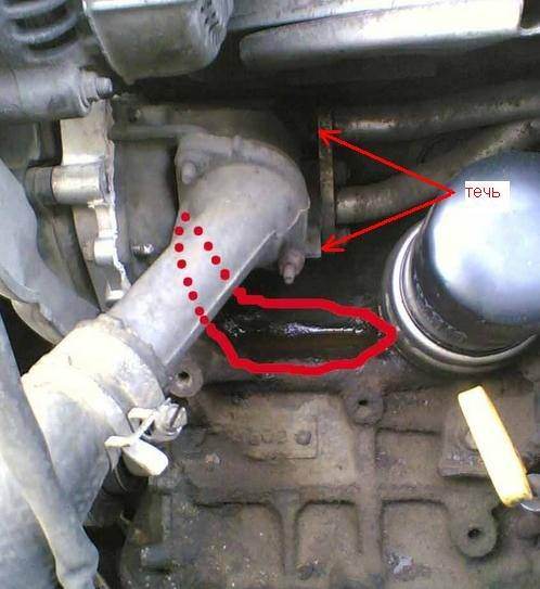 Алексей60Дело в том, что когда двигатель завожу на холодную то течи то нету (только когда работает подогреватель). Резиновое колечко я уже приобрел, а вот прокладку я там не нашёл почему то  может её там нет вообще? Добавлено спустя 5 минут 36 секунд:нашел, блин не там смотрел, надо было на помпе глядеть...