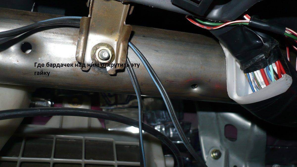 max32Молодец! Не указал, что панель пепельницы/прикуривателя держит штифт (наверное, так можно его назвать). Если пепельницу вытащить, то на левой стенке видно его будет. Надо его вытащить. Кстати, магнитофон у тебя неправильно закреплён. Поищи на форуме или драйве про крепления родные. У меня так же было, на форуме купил крепежи - супер! Иначе консолью рискуешь. AllegatorПро снятие руля правильно написал! Грамотное дополнение. Зачем "мордями" рисковать-то, если можно гайку до конца не откручивать, пока руль со шлицов не сорвал?..