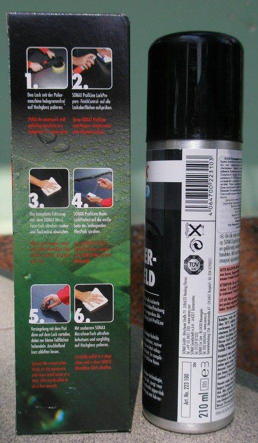 Профессиональные (ProfiLine) Sonax Nano Lack Protect 23041 и PolymerNetShield 223100 живьем. * Nano Lack Protect, тот что продается в России, отличается раскраской и упаковкой.