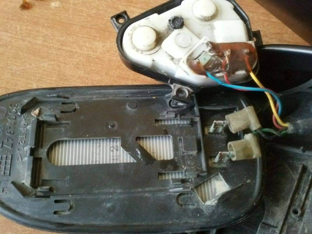 Далее начинаем разбирать зеркало,как снимается зеркальный элемент не буду описывать об этом известно уже не мало.Перейдем сразу к блоку с моторчиками....
