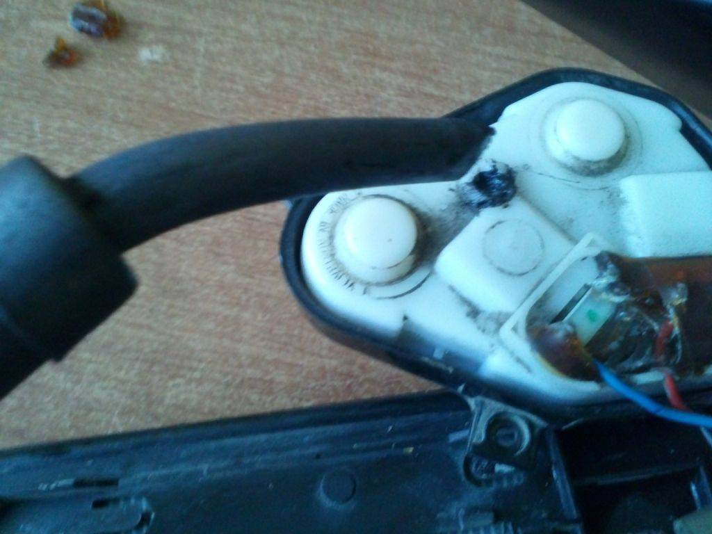 Комментарий к файлу: Паяльником плавим заклепку и отпаиваем провода от нерабочего моторчика.