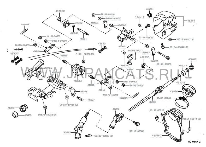 Zabik У тебя колонка не наклоняемая и уже английская, на твоей схеме их нет, вот номера которые я себе ставил, не факт что тебе подойдет Toyota 45865-12060 Втулка рулевого вала Toyota 45273-22020 Втулка рулевой колонки