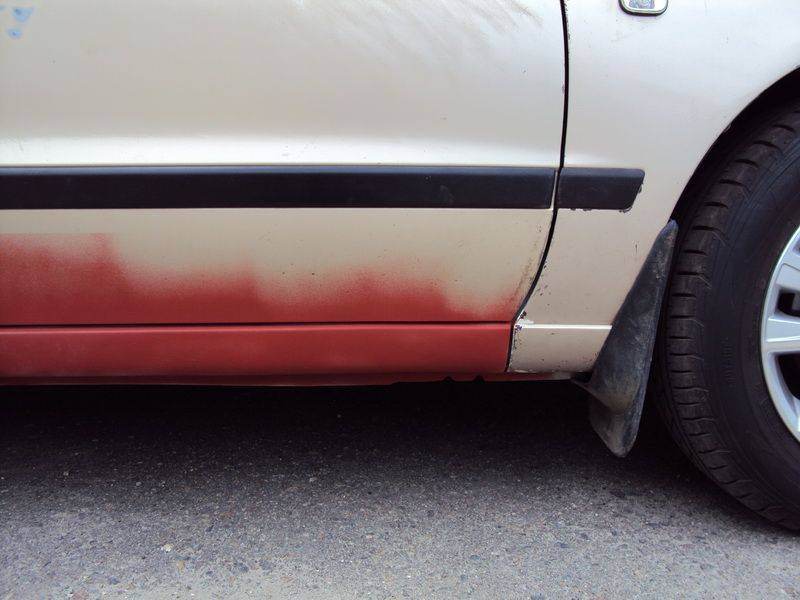 Был баклажан, в техпаспорте написано красный. Маляр спрашивал, будем оставлять или хочешь какой-то другой оттенок красного, плюс добавили синего ксералика.(фото лючка бензобака). Серый это грунт, антикором обработана полностью, днище, арки, крылья - название не помню, какой-то черный, все скрытые полости - тектил (очень долго вонял). После покраски прошел 1 год, пока ничего не вылезло, понимаю что это не срок. Сварщик-Рихтовщик очень хвалил Карину, говорил сейчас таких машин не делают, металл у нее очень хороший. И правый порог сгнил только потому что был помят когда-то очень давно, левый - в порядке.