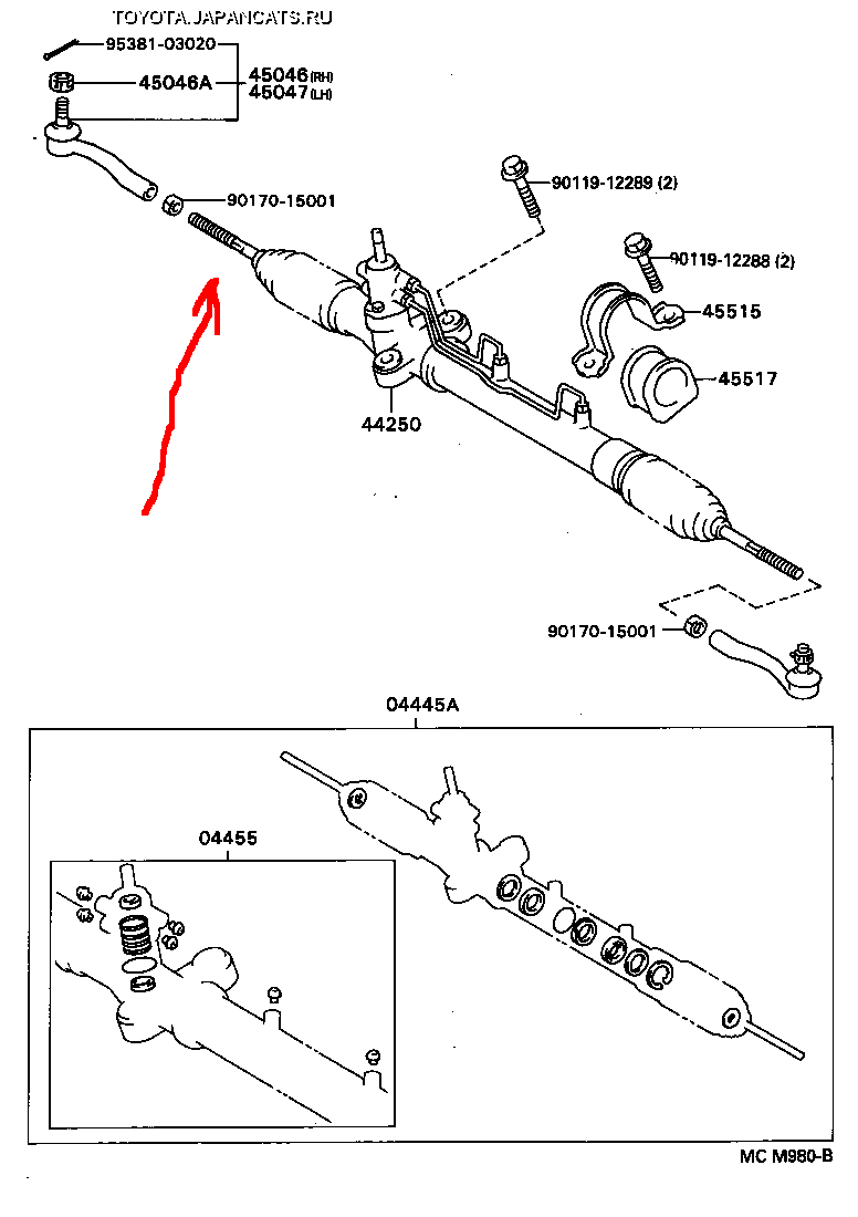 Доброго времени суток. Хотелось бы узнать какая у меня рейка, по VINу две картинки выдаёт http://toyota.japancats.ru/unit.asp?car ... figno=4505 На левой есть ремкомплек, т.е. у меня ремонтно пригодная рейка, или у всех по VINу такие картинки. И ещё вопросик, загнал на подъёмник и постучал рукой с низу в месте где стрелкой показано и был стук, пробовал в месте где палец тяги рулевой стука не было, и с правой стороны тож всё нормально. Это что значит рейки скоро кирдык? Пока не течёт. Забыл сказать у меня англичанка