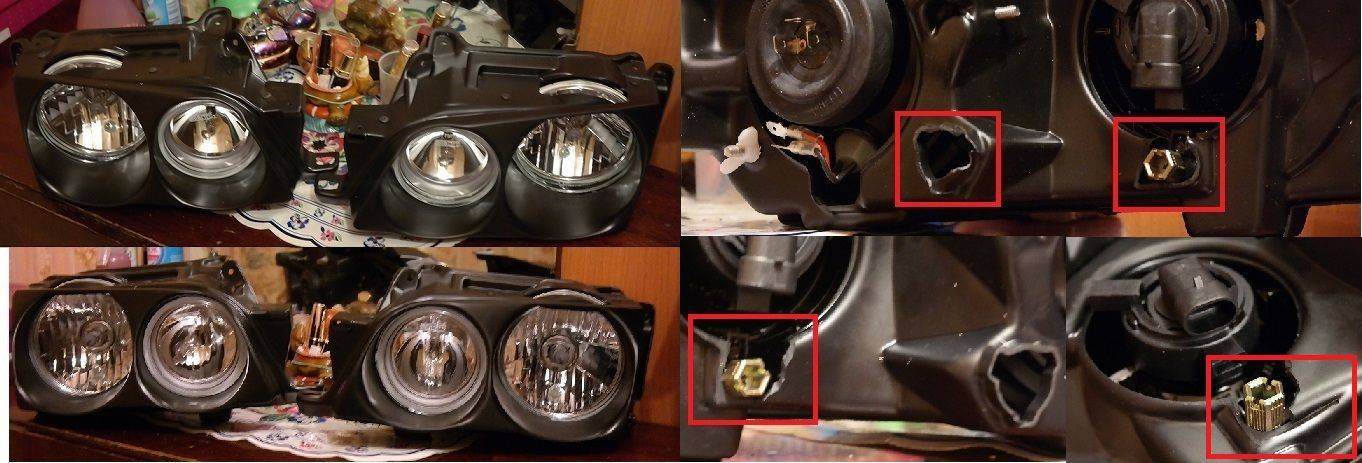 Greek_89 писал(а): Если Вас не затруднит дайте фото информацию. Вот для наглядности фото сзади (слева старая версия, справа новая). Faranos имеет ввиду то, что если посмотреть на расположение маленького модуля (дальнего/туманки), то можно заметить, что снизу, где располагается золотистый болт регулировки (если смотреть на новую версию корпусов), сделано технологическое отверстие-вырез в пластике фары, которого на старой версии нет
