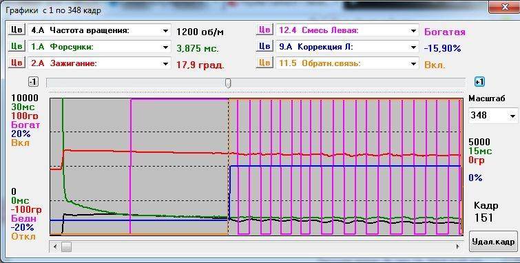 Блин, парни, я наверное вас тут вопросами забросаю Сегодня снимал графики запуска холодного после ночи двигателя... Интересная ситуация получилась Вложение: