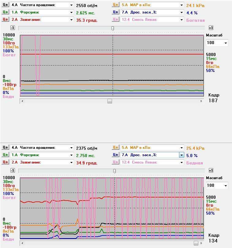 Я в теории не очень силен  Сделал тест с отключенной лямдой, у меня показывает постоянно бедную смесь, так надо? Если у м еня накрылась лямда,то при отсоединении по идее ничего не должно измениться, при подключенной почти всегда смесь богатая!!!