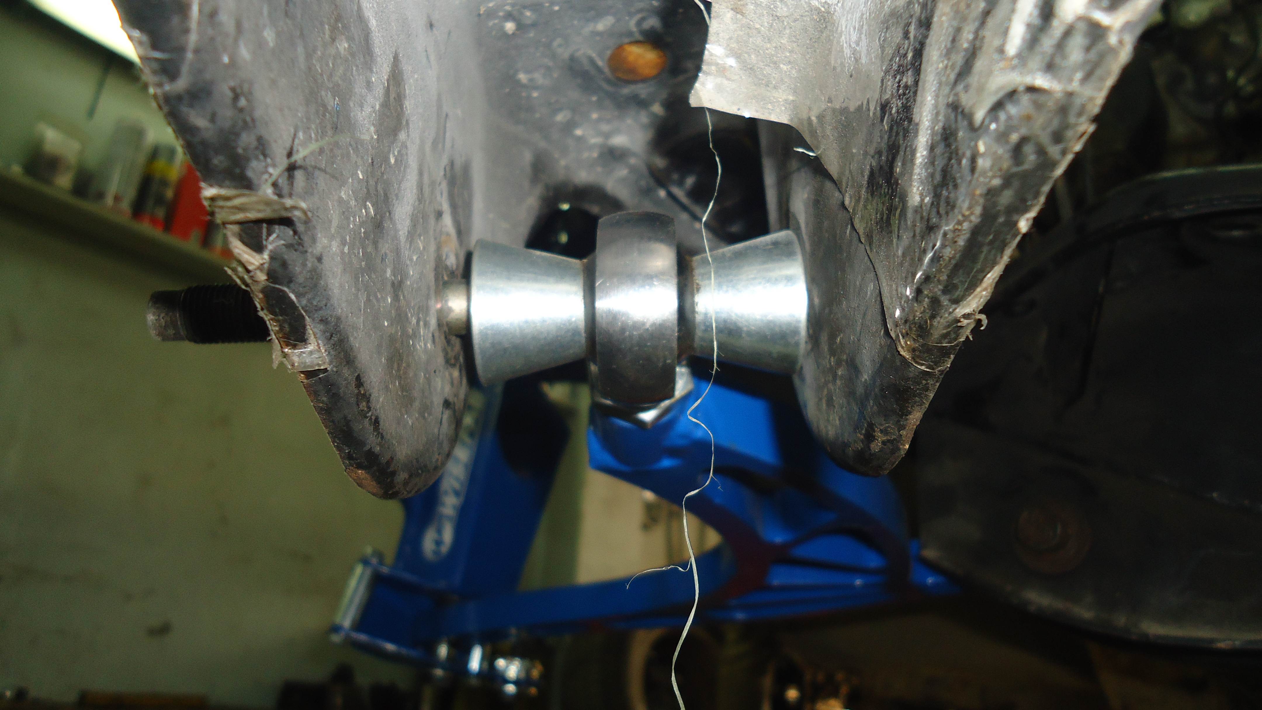 Подрамник слишком широк для нашей машины,поэтому удалены сайлентблоки,через которые он крепился,и изготовлены эксцентричные втулки,чтоб заузить базу крепления. Никаких сайлентов на гонке  Вложение: