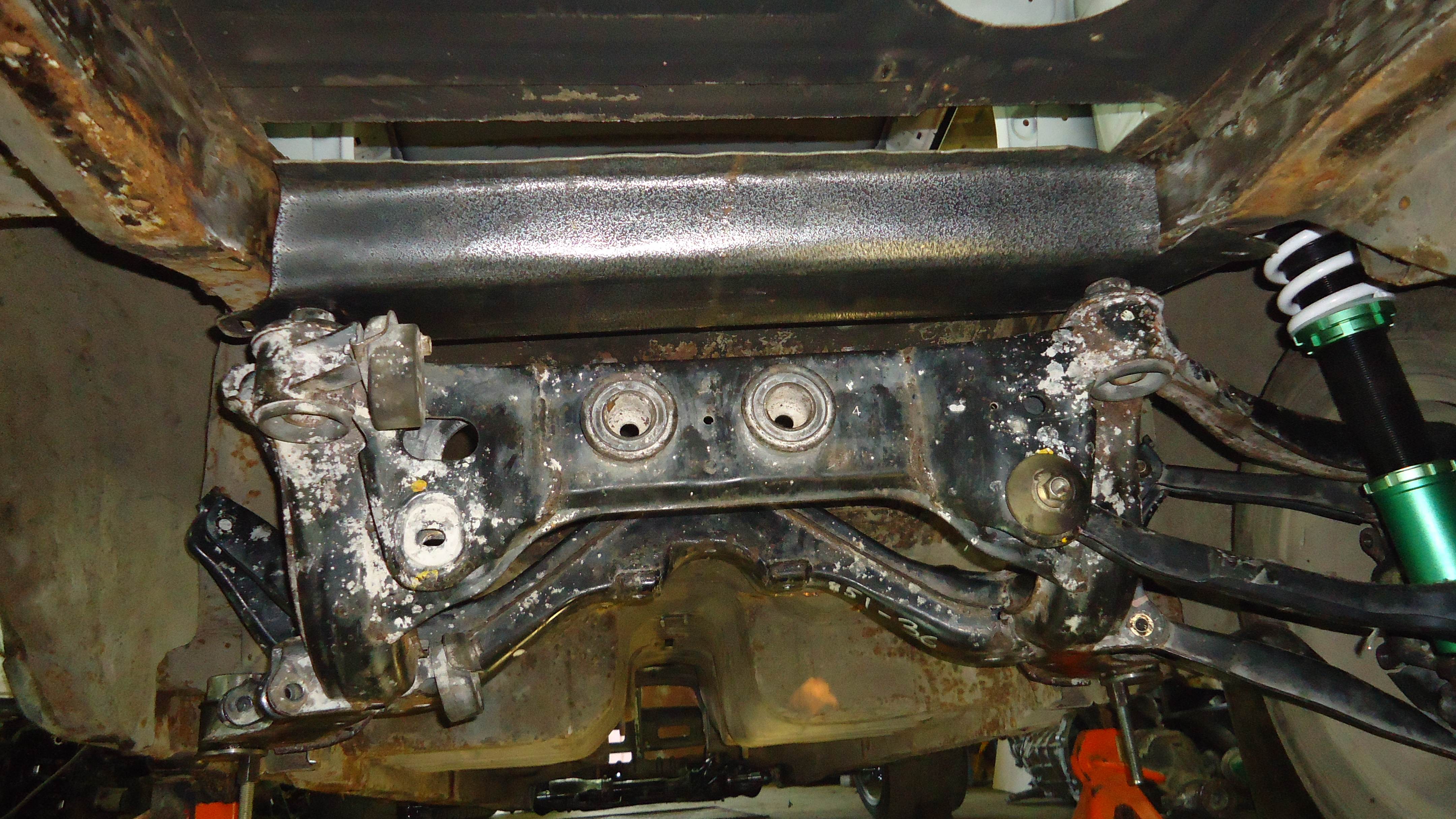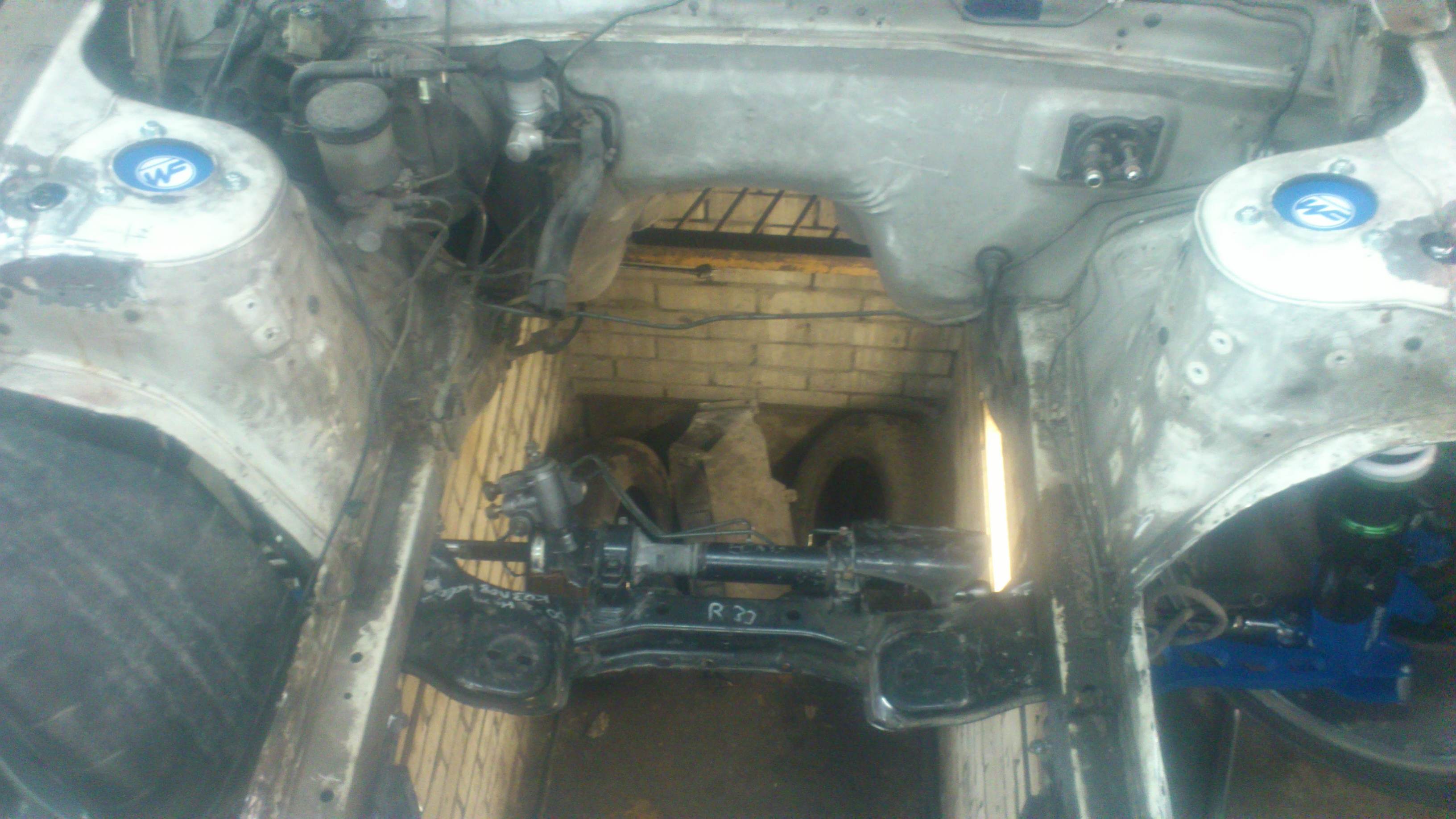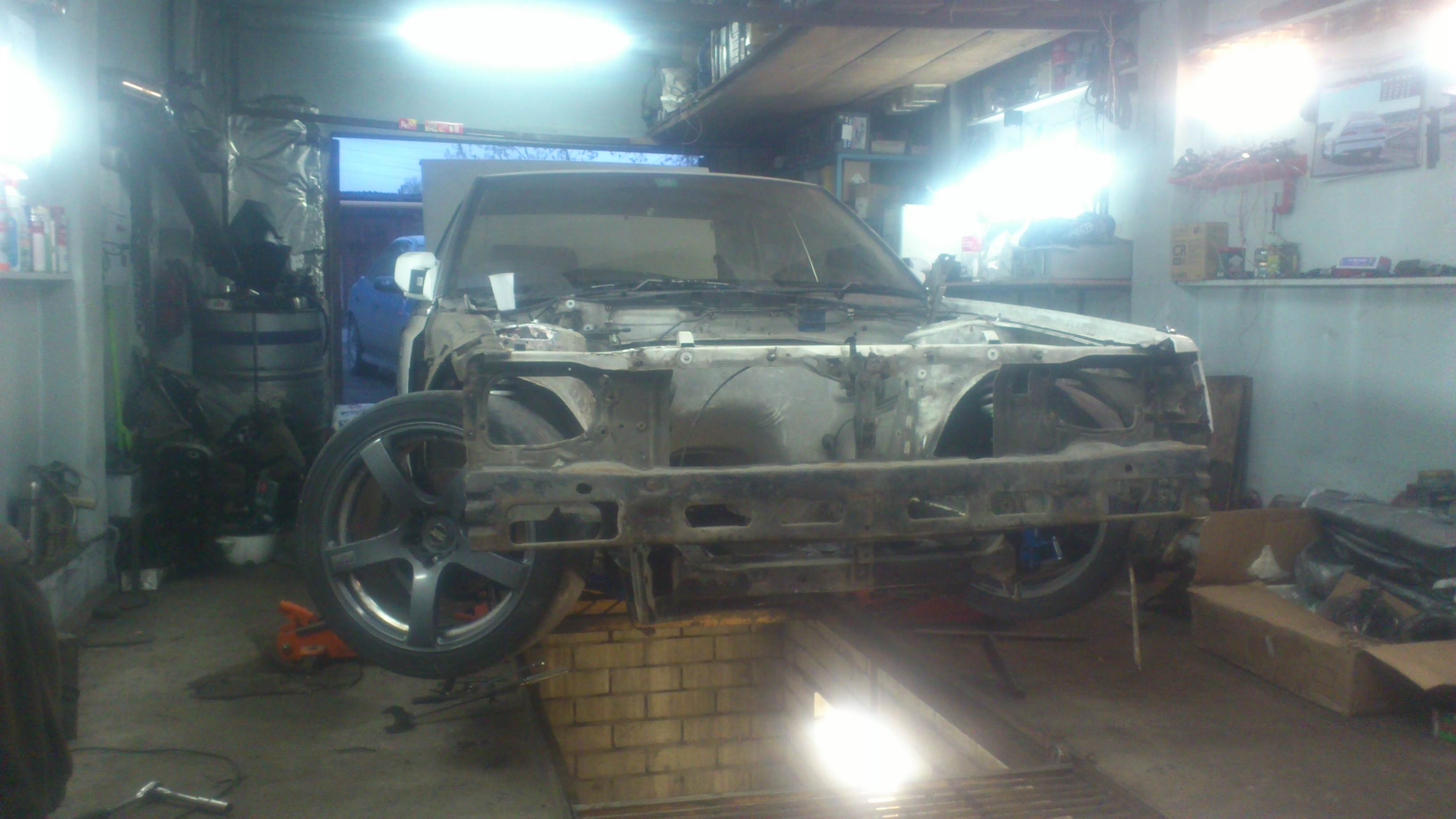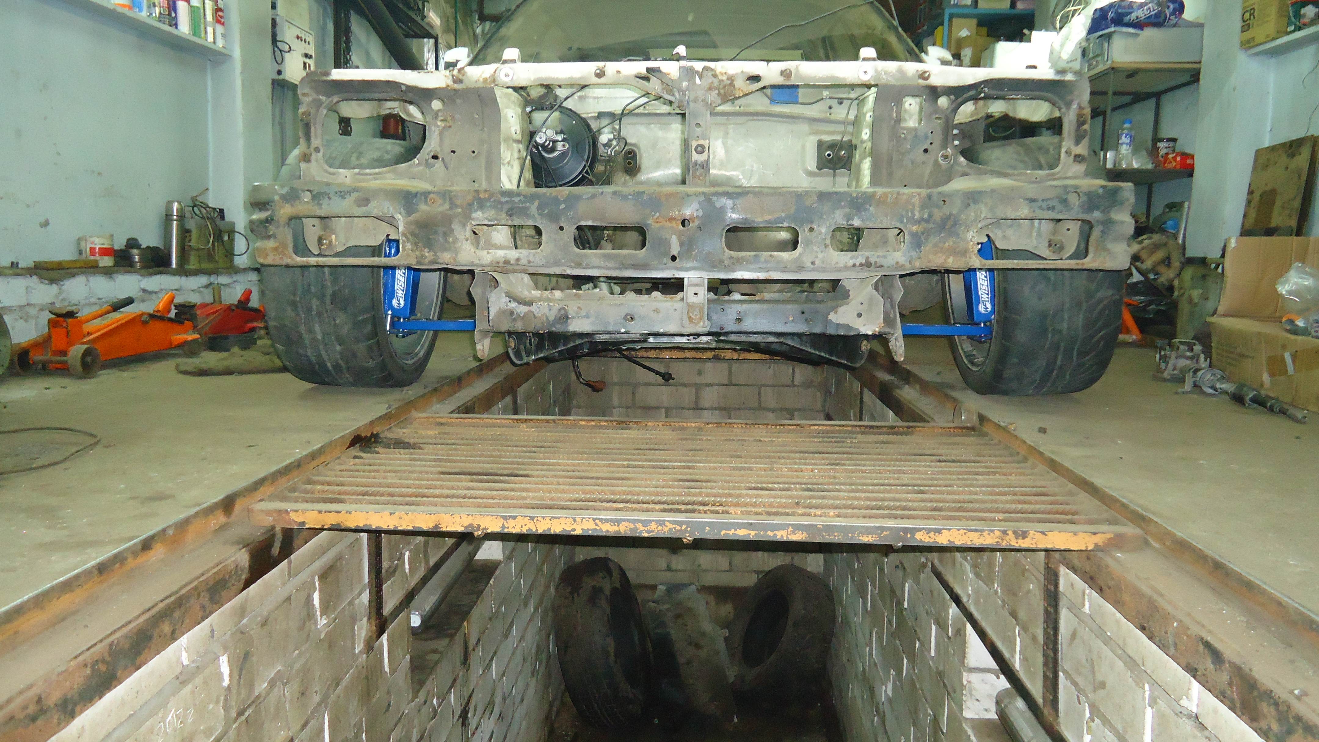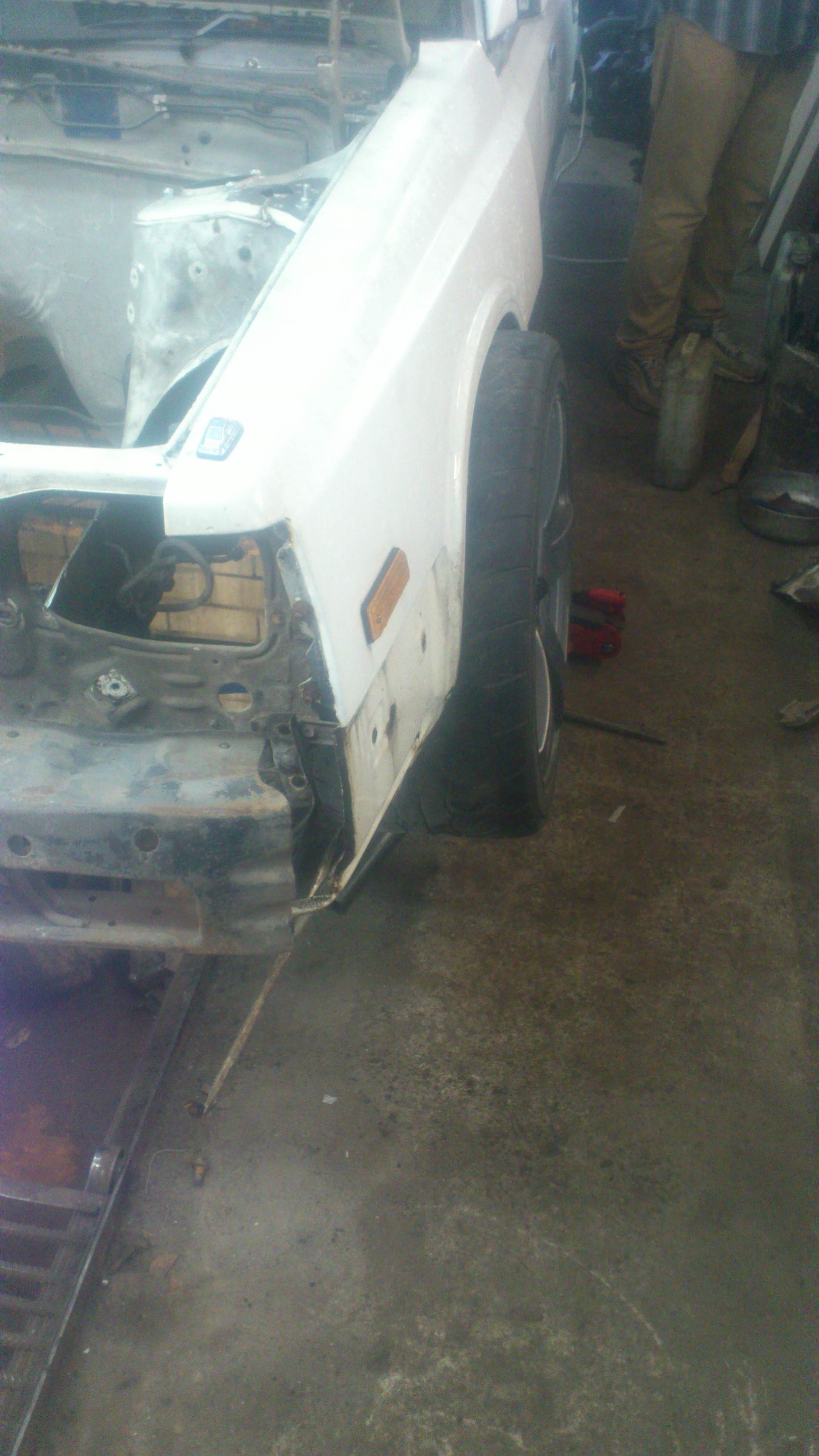 Два дня работы: удален задний цельный мост,со всеми рычагами и их креплениями к кузову.Будет многорычажная подвеска Ниссан Сильвии,все оказалось намного труднее чем предполагалось,лонжероны у двух машин очень разные,стратегия выработана,теперь осталось воплотить в металле. Пока только примерки. Вложение: