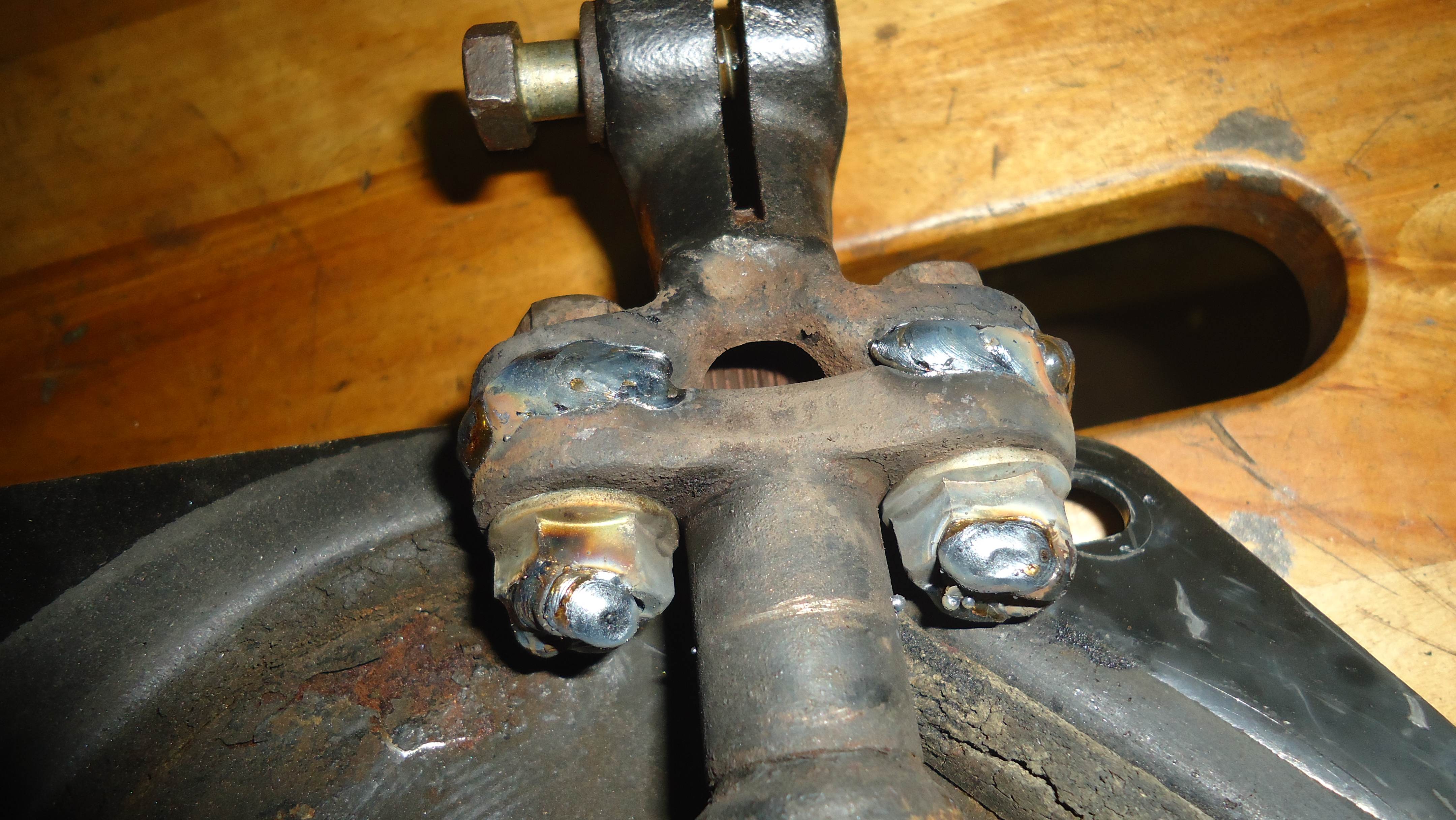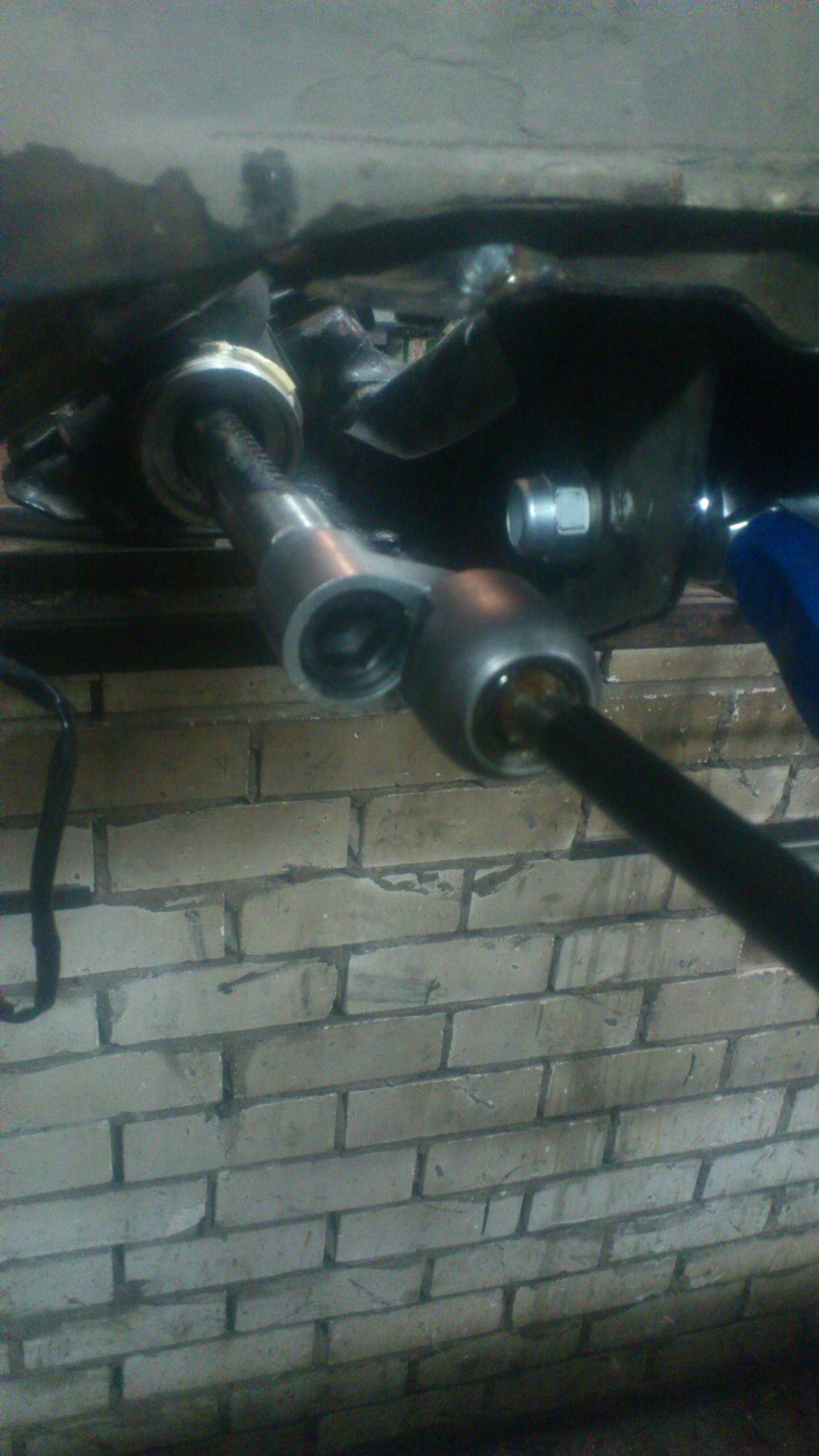 Зачем сделано все так сложно? Проще же просто приварить проставку с шпильками. Но я противник сварки в ответственных узлах,без гарантий качественного шва. Резьбовое соединение всегда надежнее,а для того чтоб резьбовое соединение не раскрутилось тут и применяю сварку  Вид на машине Вложение: