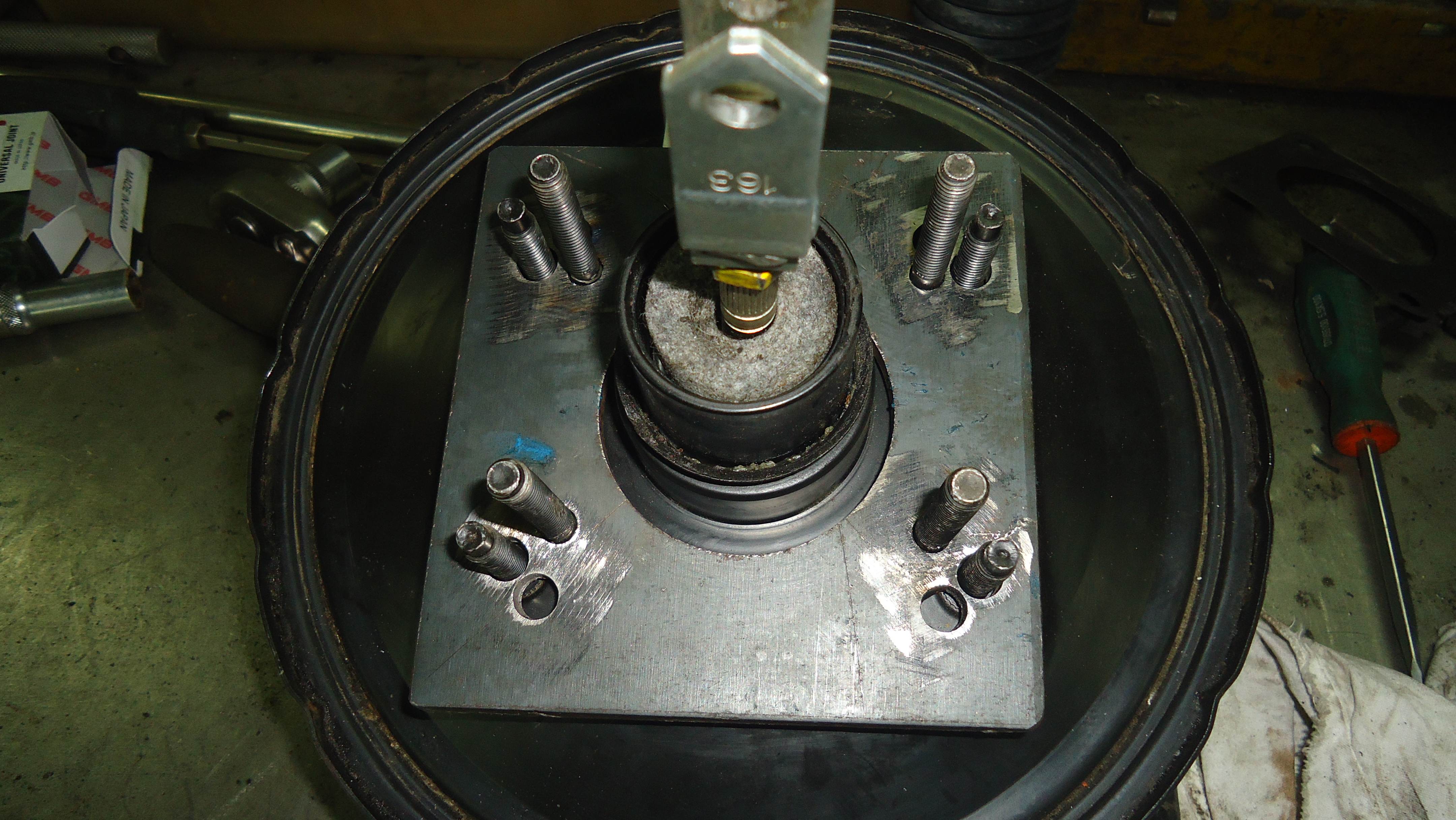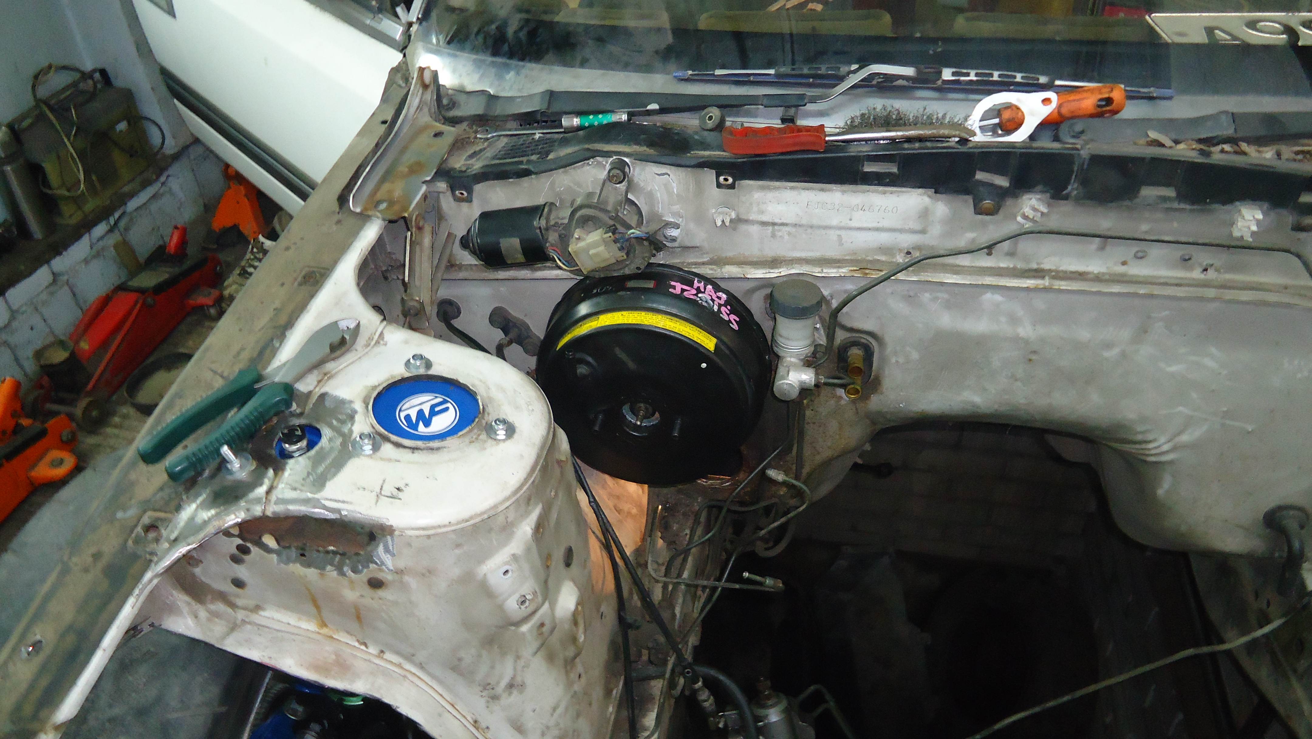 Четвертый день работ: замена вакуумного усилителя и ГТЦ на Тойотовский,от Крауна(остался после эксперементов с тормозами,лежал без дела) и укорачивание рулевого вала,так как передний подрамник от Ниссана Сильвии вместе с рулевой рейкой пришлось сместить назад и вал стал длинный. Старый и новый вакуумники Вложение: