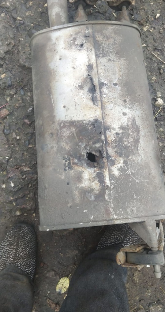 Вот и у меня прогорела задняя часть глушителя. Обнаружил дырку размером с палец в верхней части! С трудом удалил защиту между глушителем и кузовом, залез а там дыра! Ищу варианты лечения... А глушак то еще родной...