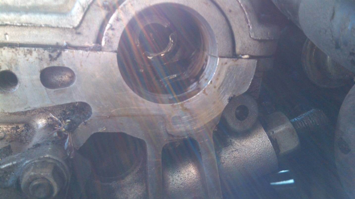 a_berger писал(а):  Ты про это место говоришь? Это не клапанная крышка, это типо бугель или хз как он там называется, клапанная крышка ставится нан его сверху, сними клапанную крышку и открути его, вставь трамблер(с новым кольцом) и закрути его(момент 13Нм) он с трамблером ровно встанет, я еще его края, которые прилегают к гбц смазал немного герметиком. про бугель я знаю... бугель чуть-чуть не так стоит - знаю... а вот обрати внимание на место чуть выше... там где поверх этого бугеля ложится крышка клапанов... вот правее отверстия под трамблер видно, что крышка выступает над бугелем, а левее отверстия - как бы утоплена...