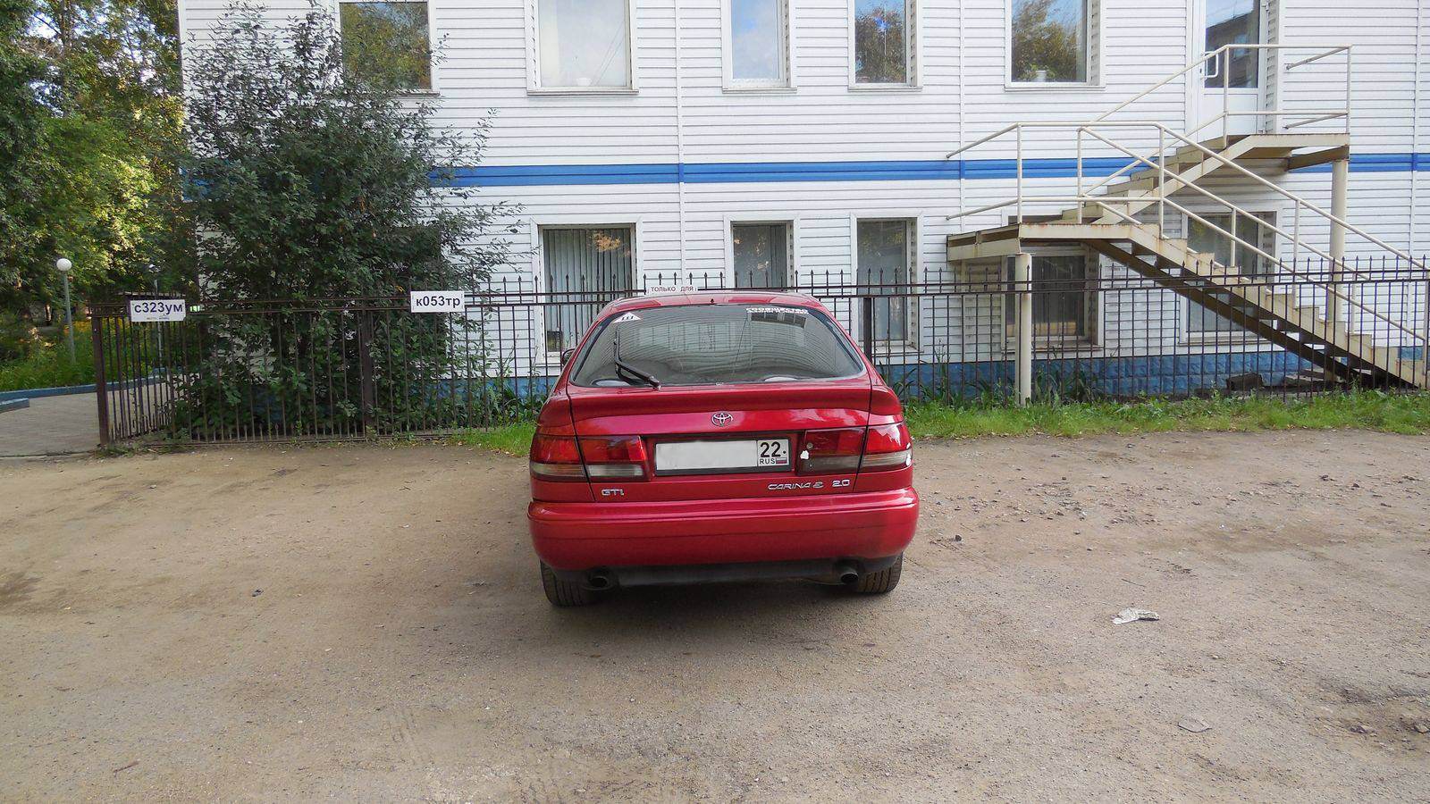 Carina E GTI, японка, 1993 год, родной цвет 3J6, облита поярче добрым перекупом, 160 л.с. в ПТС. Третья(!) ПТС, соответственно хозяевов много было и большой объем работы предстоит. Была пригнана из Германии (судя по наклейкам на дверях касательно давления шин) в Калининград, затем побывала в Челябинской области, затем попала на Алтай. Пробег по одометру- 311527 Ощущения после ВАЗА сказочные, сверхудобные сиденья с боковой поддержкой, четкая работа механической КПП, когда рычаг не нужно до конца додавливать. Привыкал к комфорту пару дней)