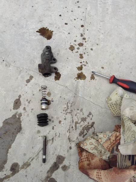 как и обещал описываю сегодняшний ремонт и немного фоток) поставил я таки ремкомплект на рабочий цилиндр сцепления) всё прошло успешно и абсолютно несложно) мне понадобились:сам ремкомплект, ключ на 10, головка на 12, очиститель, отвертка и где то 100-150 грамм тормозухи. в общем рассказываю как и что: снял защитку маленькую, она на двух болтах, затем ослабил трубку и выкрутил сам цилиндр(он тож на двух болтах), и снял полностью трубку, хорошенько всё помыл профамом 1000 и минут 15 пытался вытянуть это маленький цилиндрик с пружинкой, никаких стопоров там нету, в итоге потыкав туда отверткой он выскочил сам))) всё понятно и просто, так там всё почистил, но! я запихал туда новый, а он вообще не ходит и я чуть не словил панику, кое как его оттуда вытащил с помощью компрессора, как оказалось моя ошибка была в том что нужно обильно смазать всё свежей томозухой, чего я как раз и не сделал изначально))) снова всё поставил, собрал всё обратно и довольно долго прокачивал, пока наконец педалька не стала нормально работать)))) целый день сегодня катался и очень доволен, работает всё изумительно) кстати за сам ремкомплект отдал 200 рубликов)