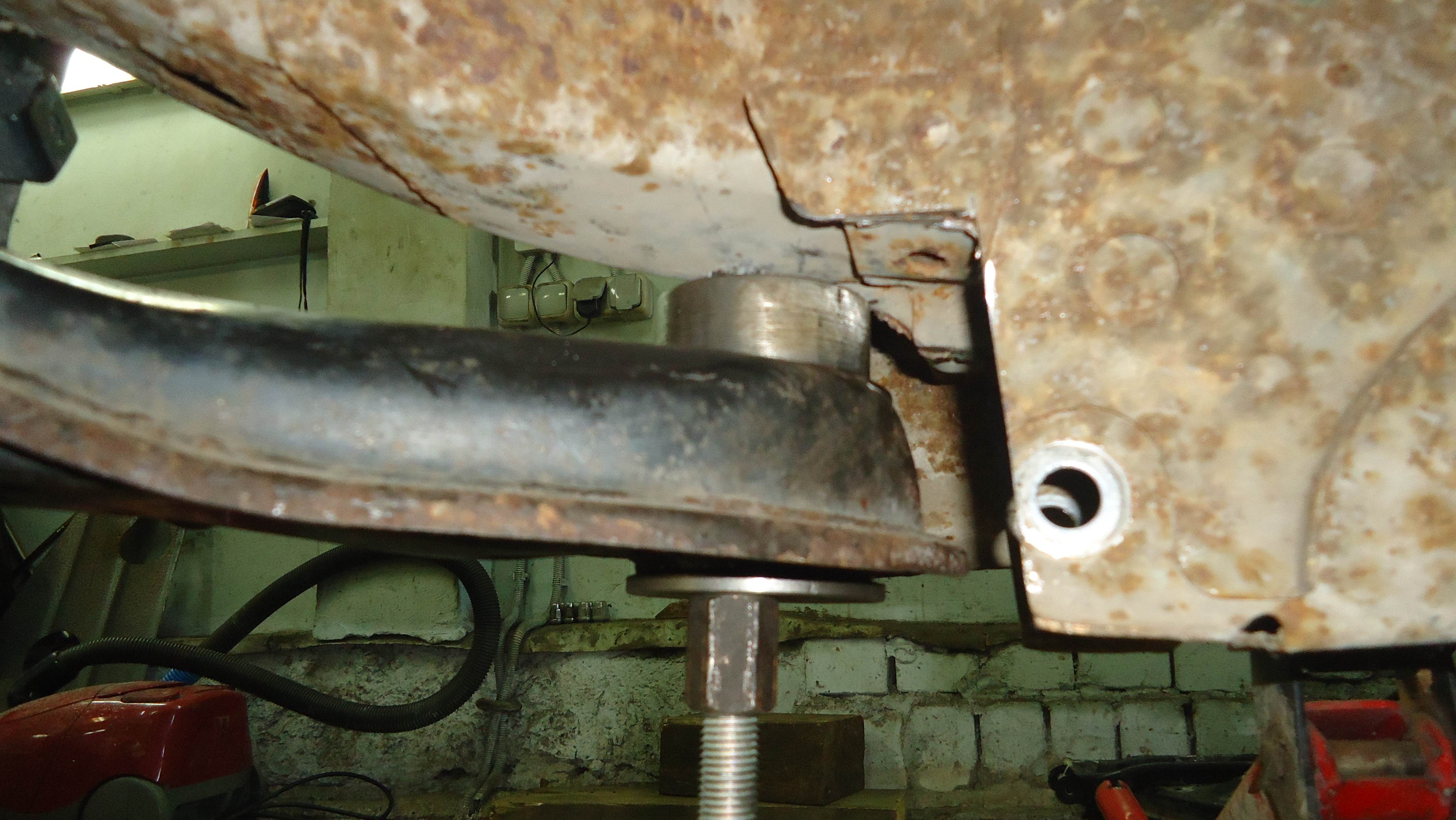 Подрамник слишком широк для нашей машины,поэтому удалены сайлентблоки,через которые он крепился,и изготовлены эксцентричные втулки,чтоб заузить базу крепления. Никаких сайлентов на гонке  Вложение: