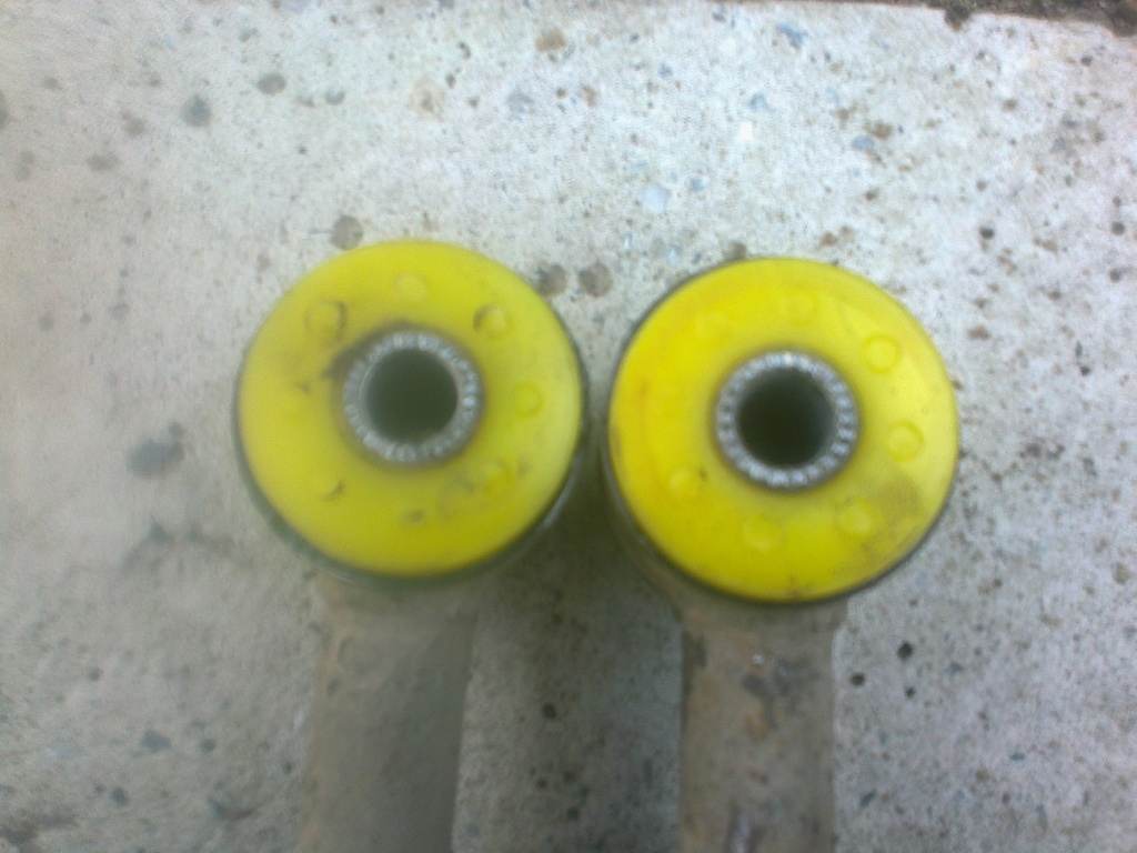 Полиуретан в задний кулак прессовал каким-то обычным трехлапым съемником для подшипников.Но пришлось это делать с помощником.